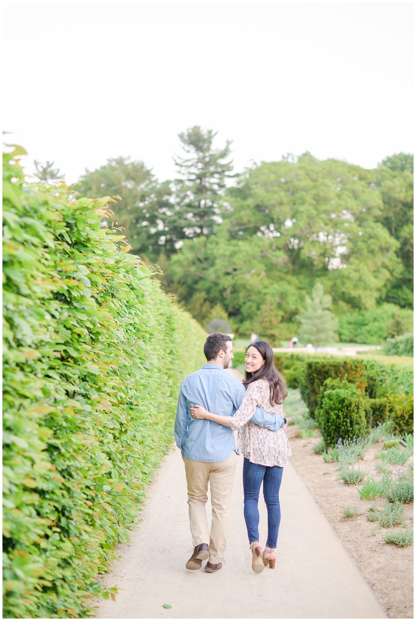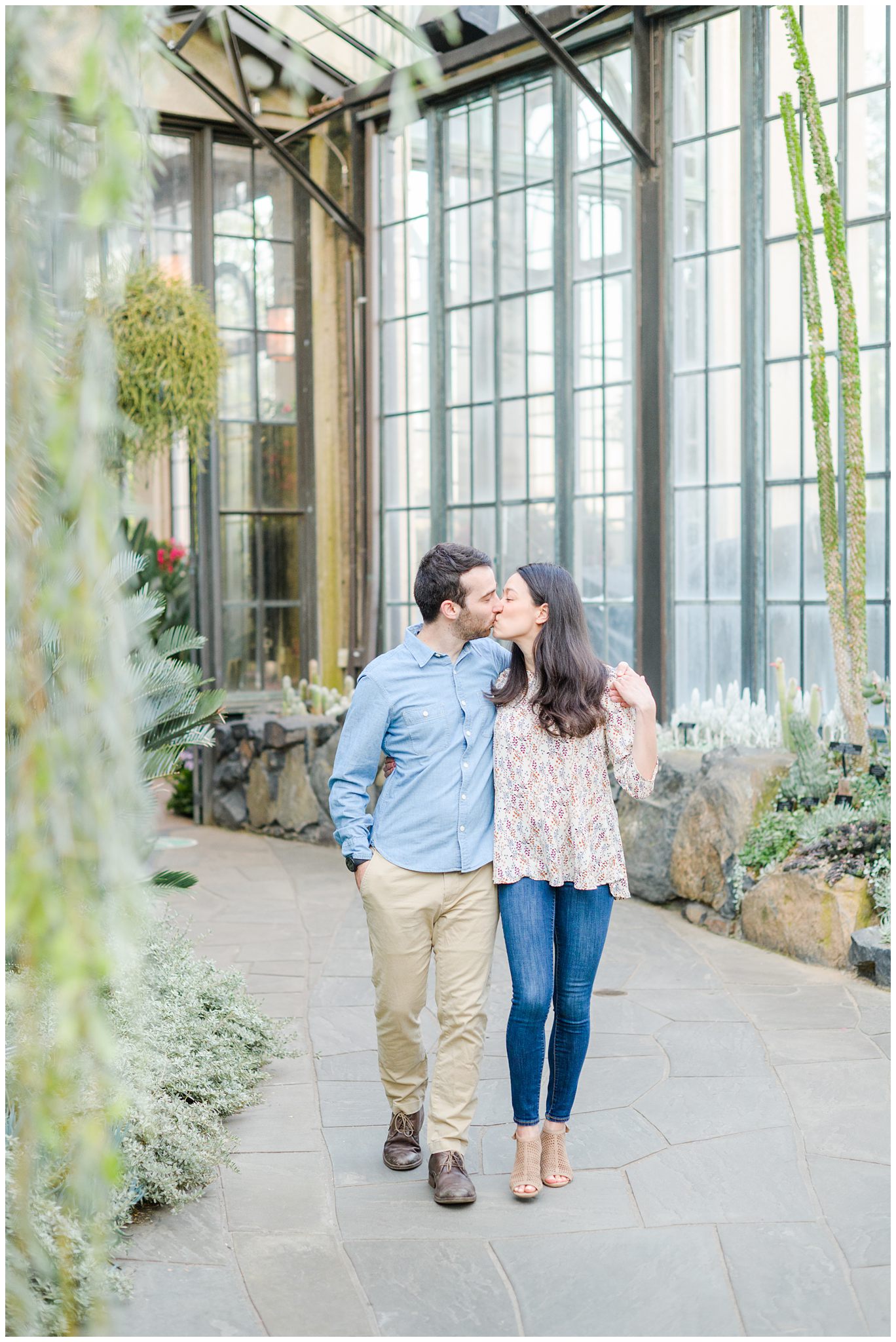 Alison’s parents live right near Longwood and visit the gardens often— she’s visited the gardens countless times too! She knew this would be the perfect place for her and Dan’s engagement session, and she was so right. It was beyond incredible to have a local tour guide that knew all of the most amazing spots and the quickest route to the next view. We met on a Friday during the Festival of Fountains, so I was a little nervous going in! How crowded would it be?! Would we be able to capture all of the amazing views without lawn chairs and humans in the background?! Fortunately, everything worked out, we had the BEST glow, and even got to visit the Conservatory (AKA the gorgeous and huge greenhouse with about every plant species you could ever dream of!). I loved touring the gardens with them, finding the best light, and identifying our favorite plants and flowers along the way.