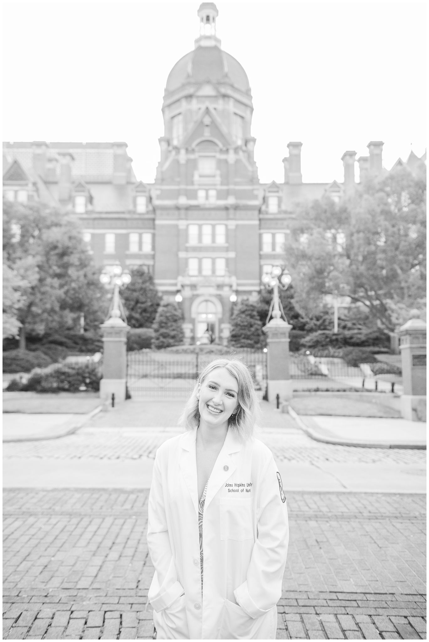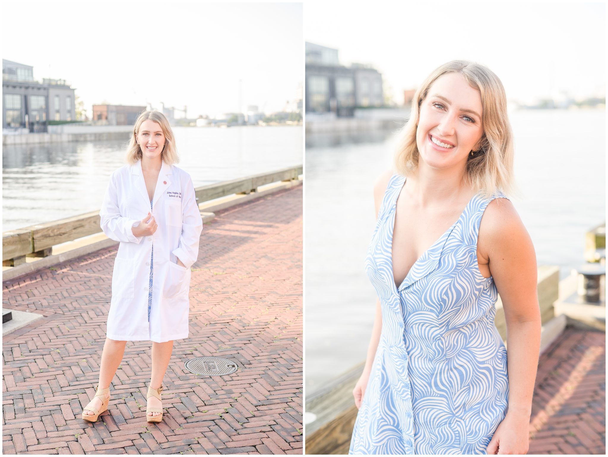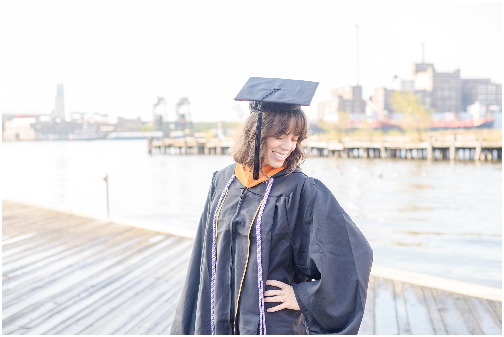 I am obsessed with Calla’s fun and colorful dress! Gah so gorgeous, Jess! Sean’s joy can’t help but make you smile! I was determined to make waterfront portraits happen for these ladies! SO grateful for their flexibility!  Before heading to the waterfront, Jess and I started on the Hopkins hospital campus for some sweet photos of her in her grad attire and with her pup!