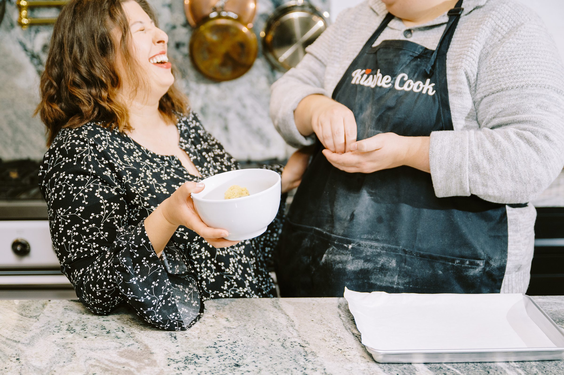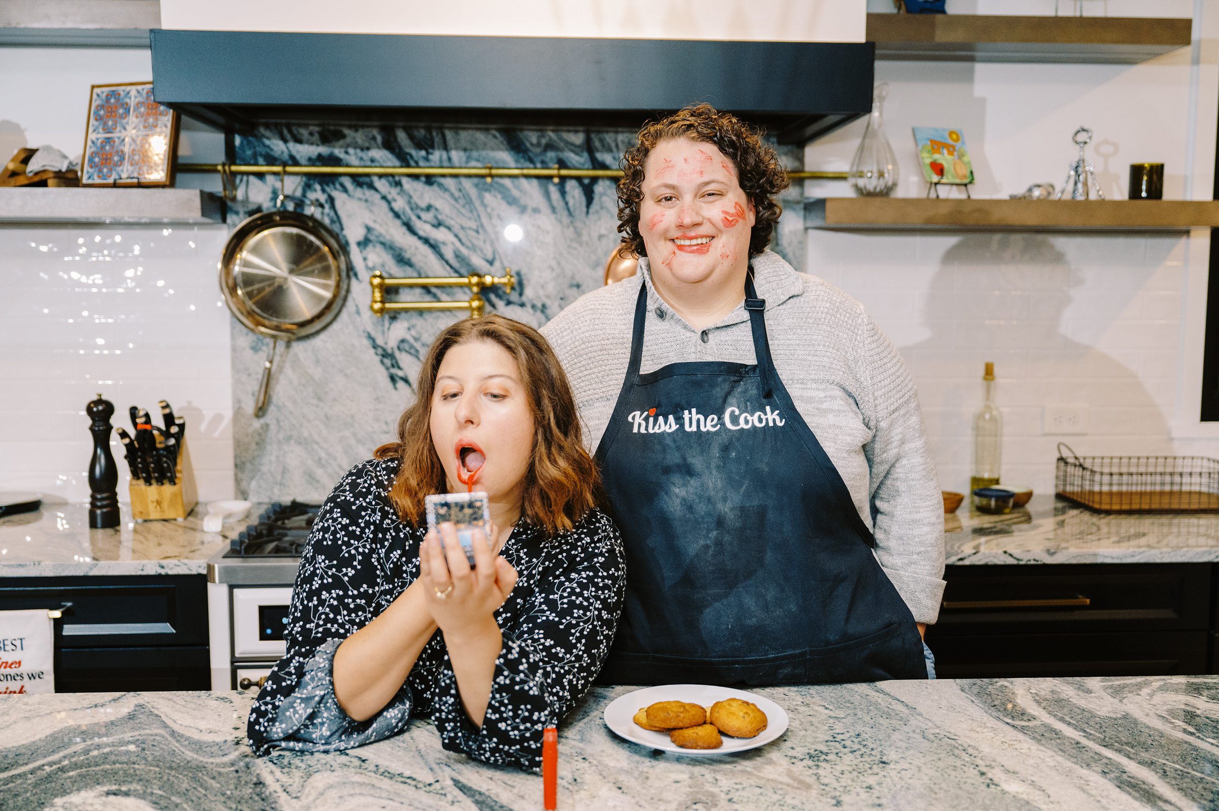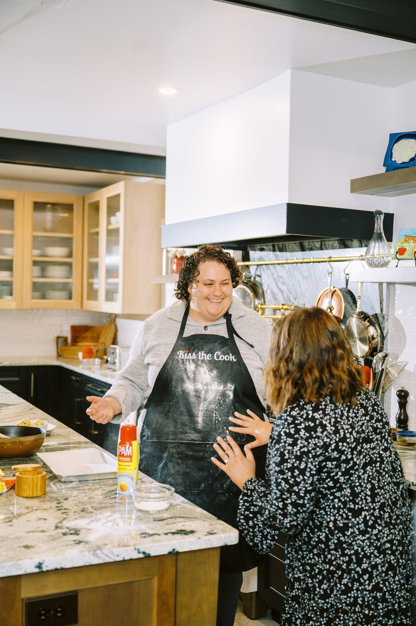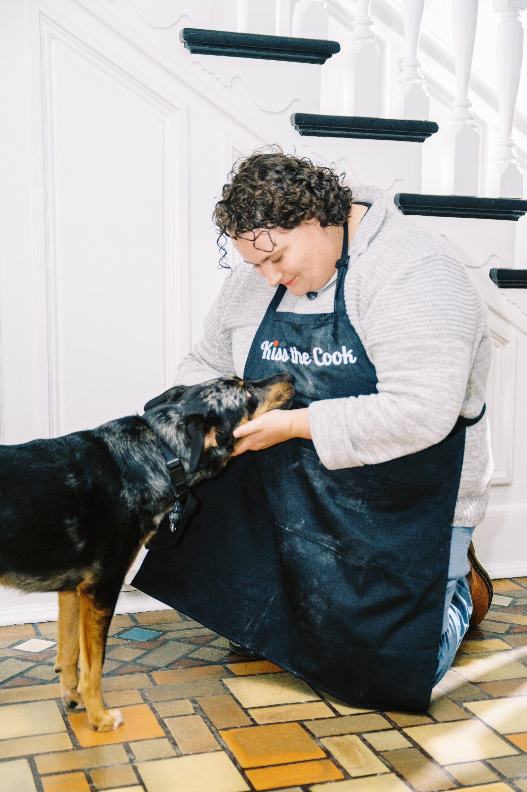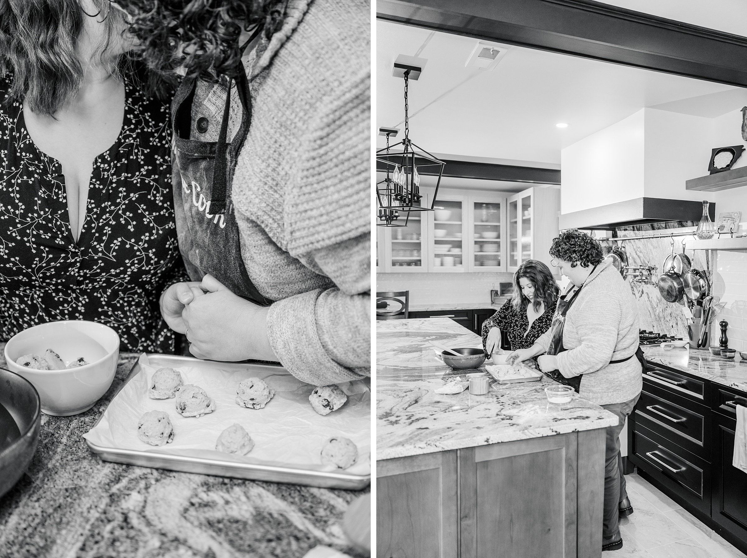 K and J came prepared with the sweetest ideas. We started in the kitchen with a “kiss the cook” moment while they baked cookies together. J wore red lipstick and kept sneaking little kisses onto K’s cheeks, and honestly, I could’ve photographed that scene all afternoon. Then we headed across the street to the bay after they changed into simple white tees and jeans, snuggled up with their pup, and leaned into the breezy shoreline vibes.