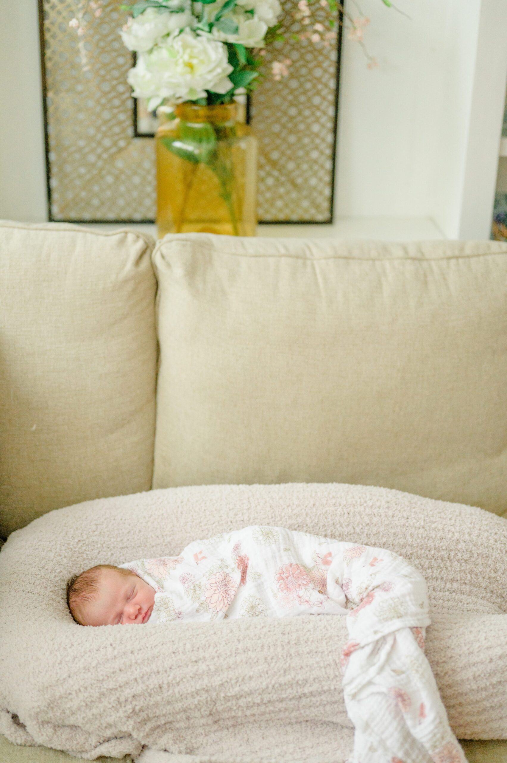 Lifestyle newborn photos in Baltimore always hold a special place in my heart, but this session was extra special for so many reasons. Sweet baby L is now over a year old, bubbly and bright, and truly one of the cutest little humans in the world. She was born last December, just a few days before Christmas, and made it home just in time to celebrate with her family. And as luck would have it, her mama and I go way back—we teach together at The Bar Method!
