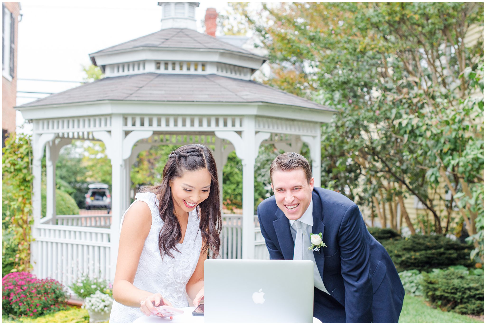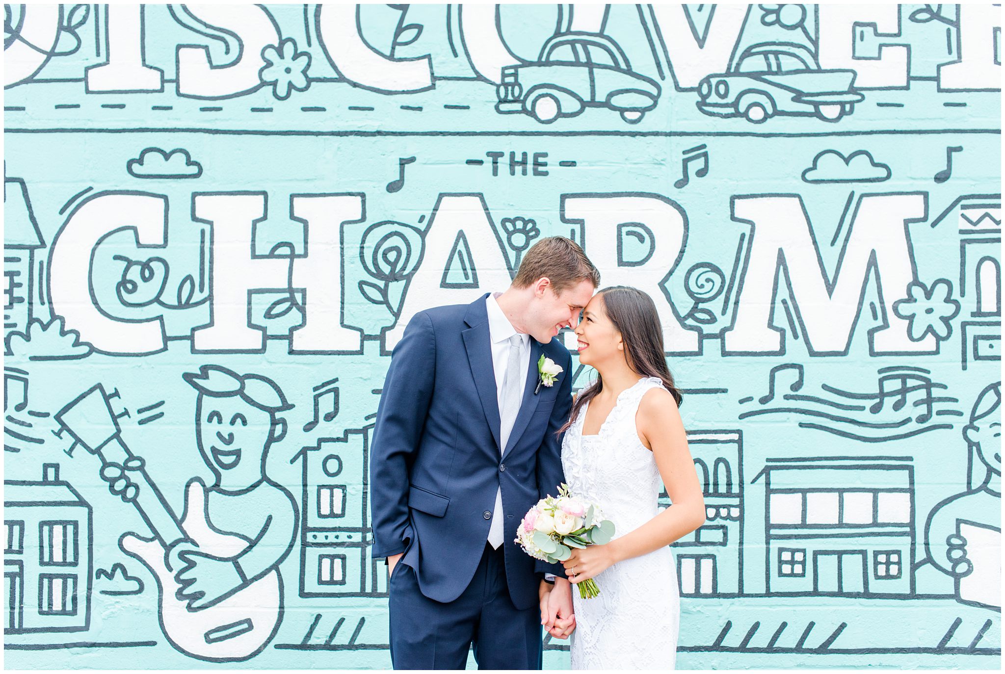 Fast forward to their wedding day, and though Leesburg is nowhere close to Aruba, their smiles said it all! These two were SO excited to be married— it didn’t matter where it happened. With their closest family members tuning in on Zoom, and just me and their officiant as in-person witnesses, these two said their vows, exchanged rings, and OFFICIALLY became husband and wife! Following their ceremony, we got to explore so much of downtown Leesburg! I’ve been to Birkby House a few times but never got to explore the streets surrounding the venue! Michelle and Ryan had explored town on foot a few times before and worked SO hard to find a few amazing spots for us to visit. We had so much fun touring and finding cute spots to tuck away for portraits!