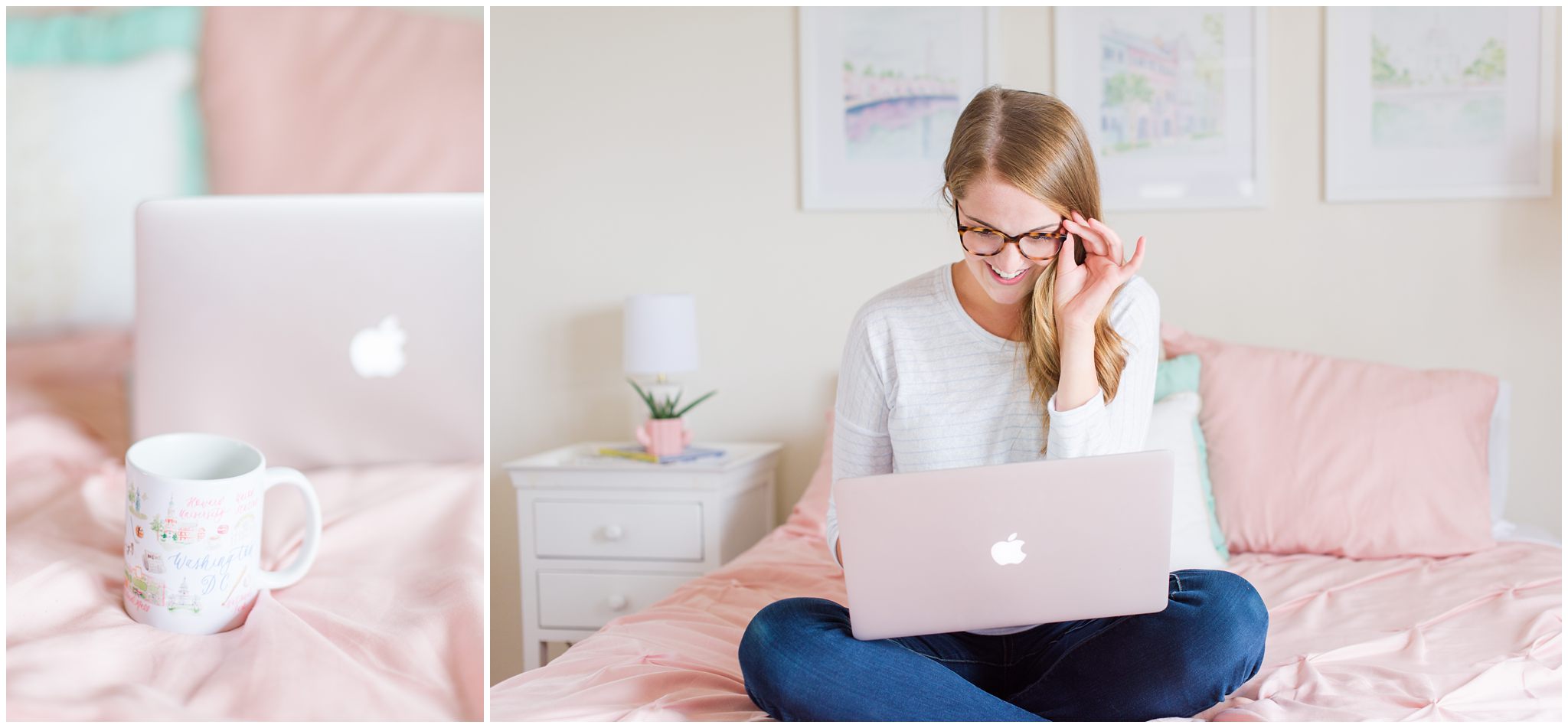 Because of that, I wanted to create a space that I truly loved, felt like it represented who I am right now, and most importantly, that I am excited to care for. (AKA please give me some motivation to put away my laundry during busy season!) I wanted to create a space that didn’t have to be feng shui-ed for every client video call or online chat with my brides. I wanted to be able to use the space as a backdrop for my business, and I didn’t want to feel embarrassed about sharing the space, as I had previously. My room gets great light, and it sounds silly but, this photog wanted photos in one of her favorite spaces! Even more than all of that though, I have spent the last year and a half growing and changing as I left a lonely, sad and burned out season behind. It would only make sense that the space where I spend 95% of my time reflects that change too and feels just as happy as I do now.
