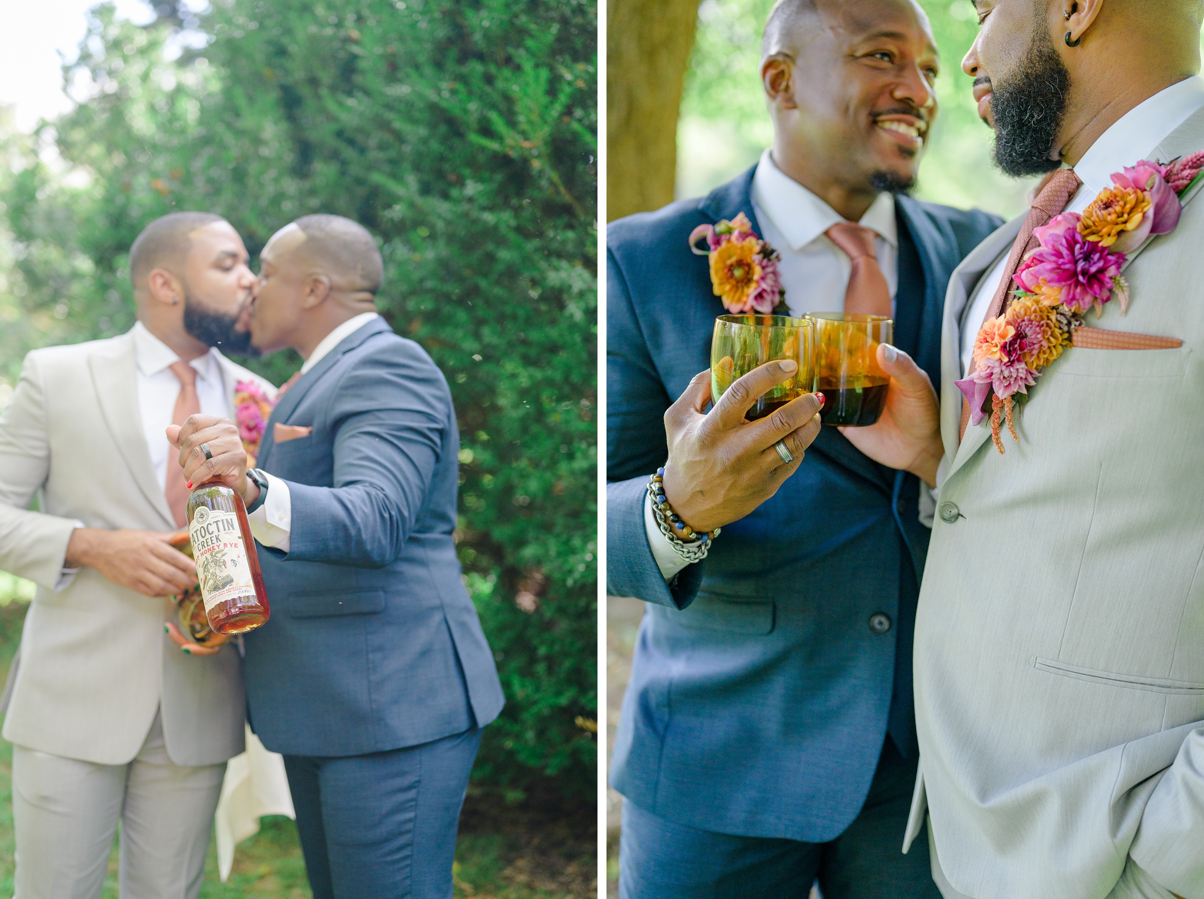 After getting ready, it was time for the first look… followed by digging up the bourbon! Clearly the tradition worked as we had a beautifully rain-free afternoon! 😉
