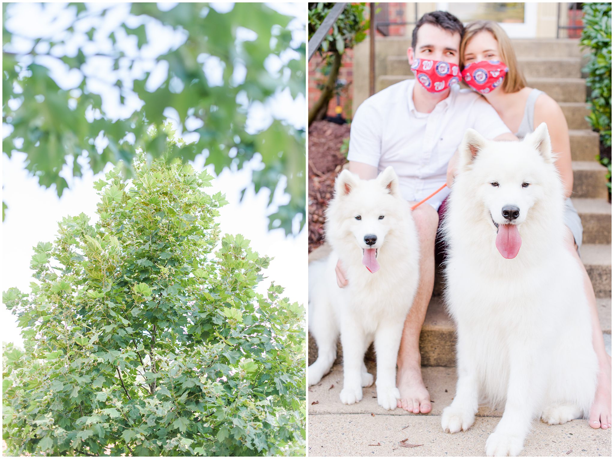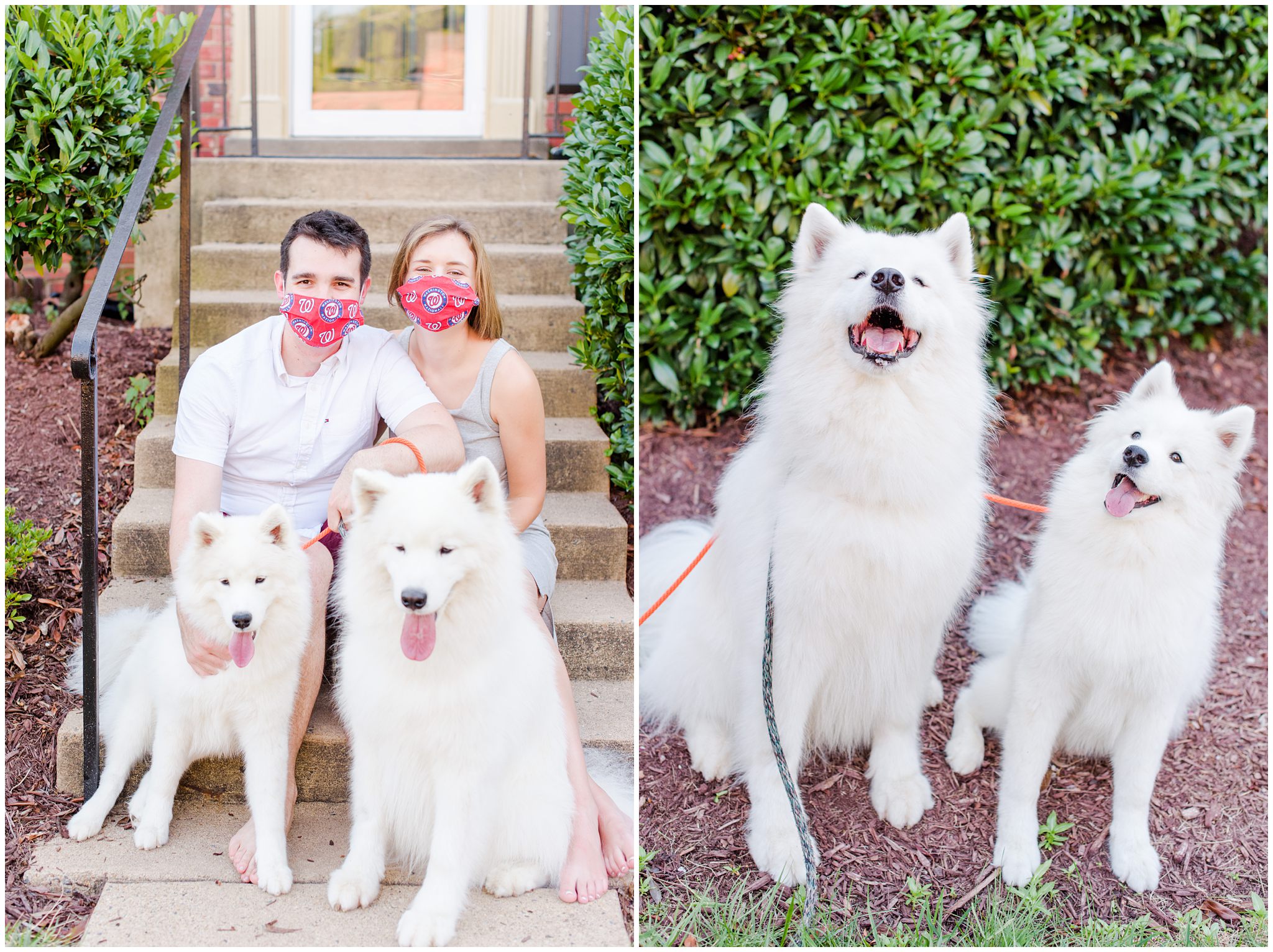 Shutdowns happened pretty quickly back in March though, and to keep us all safe, we decided to postpone through to the summer. I truly think everything worked out for the best though because this session was something so special! These four have gotten to settle into life together during quarantine, and we decided to take their photos on the front porch of the home where they’ve spent so much time together over the last couple of months. We chatted about what they’ve all been up to during quarantine, I got some puppy snuggles in, and I also got to see Hoove’s favorite places to sit and hang out at home. It is always such an honor to work with my clients after their wedding date, and this was just a little more special because we got to spend time in such a meaningful spot for this crew!