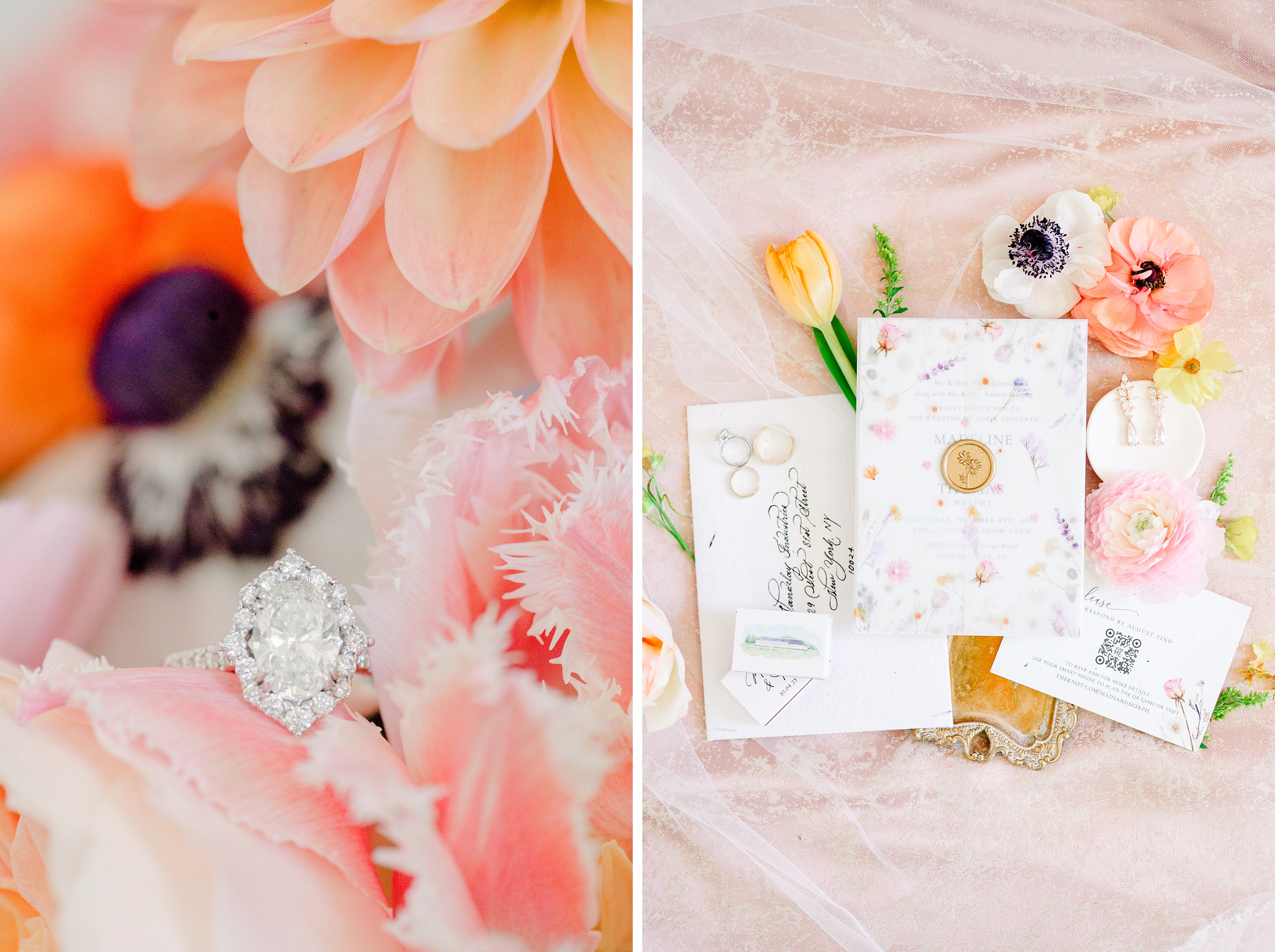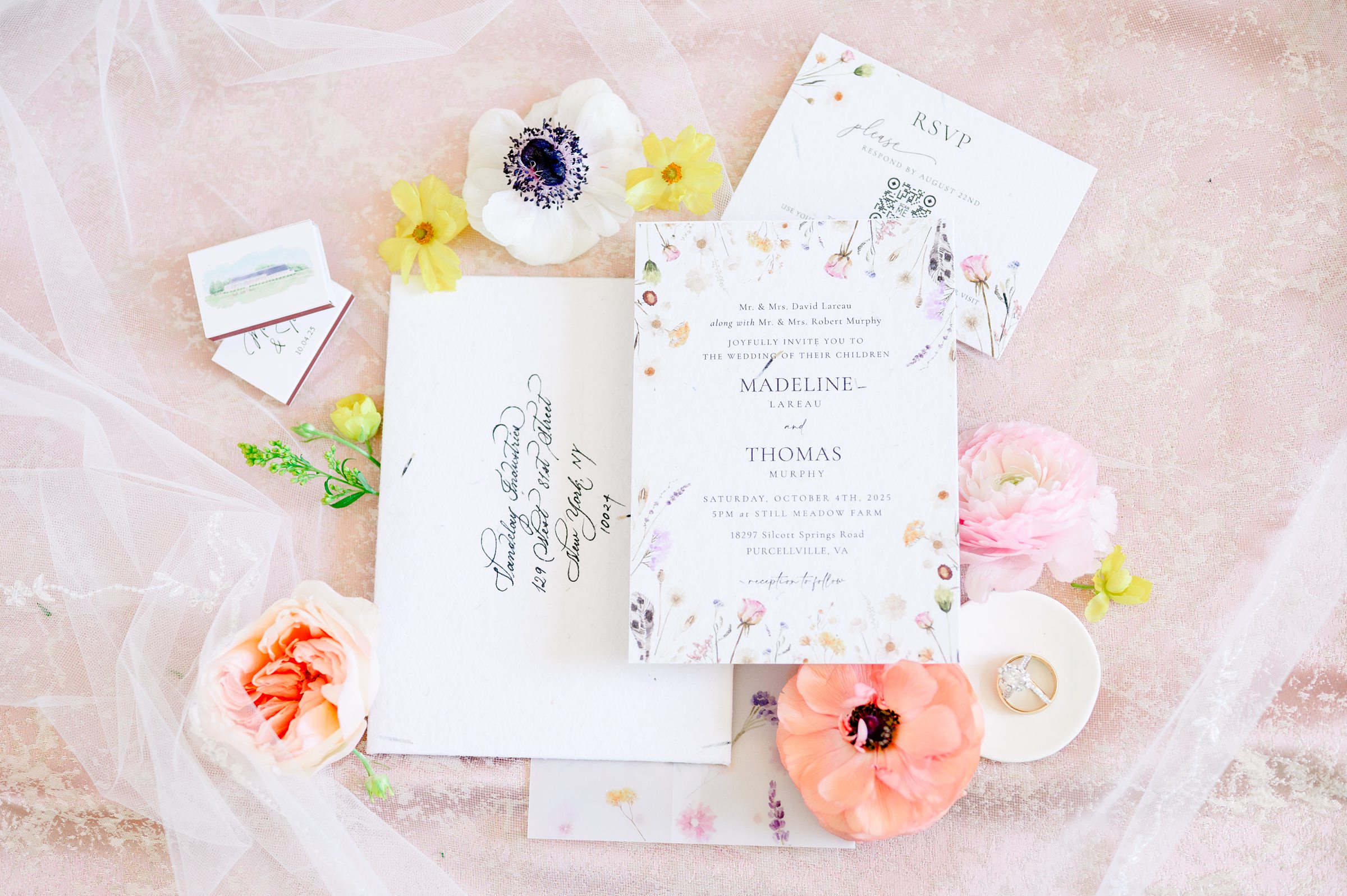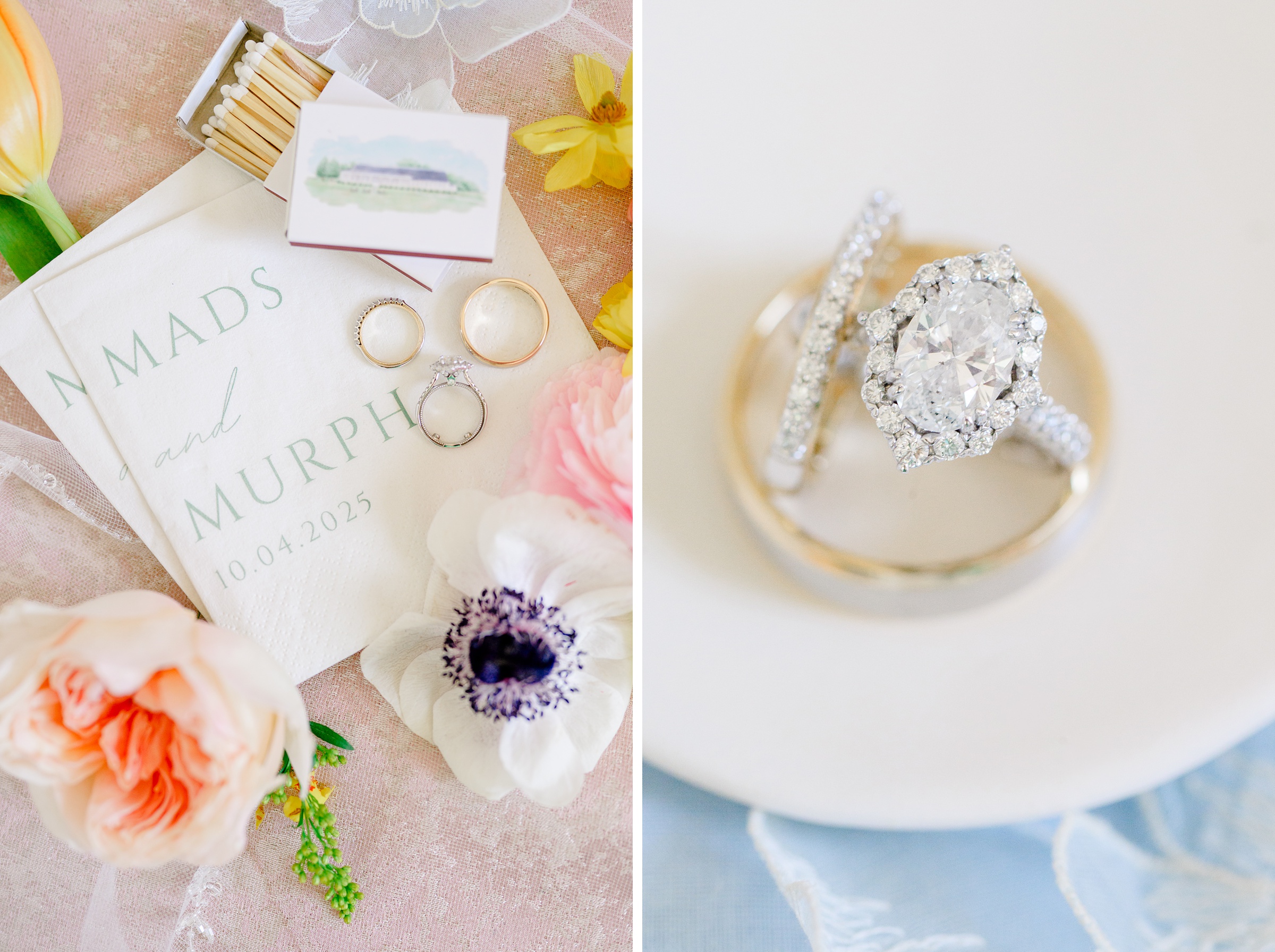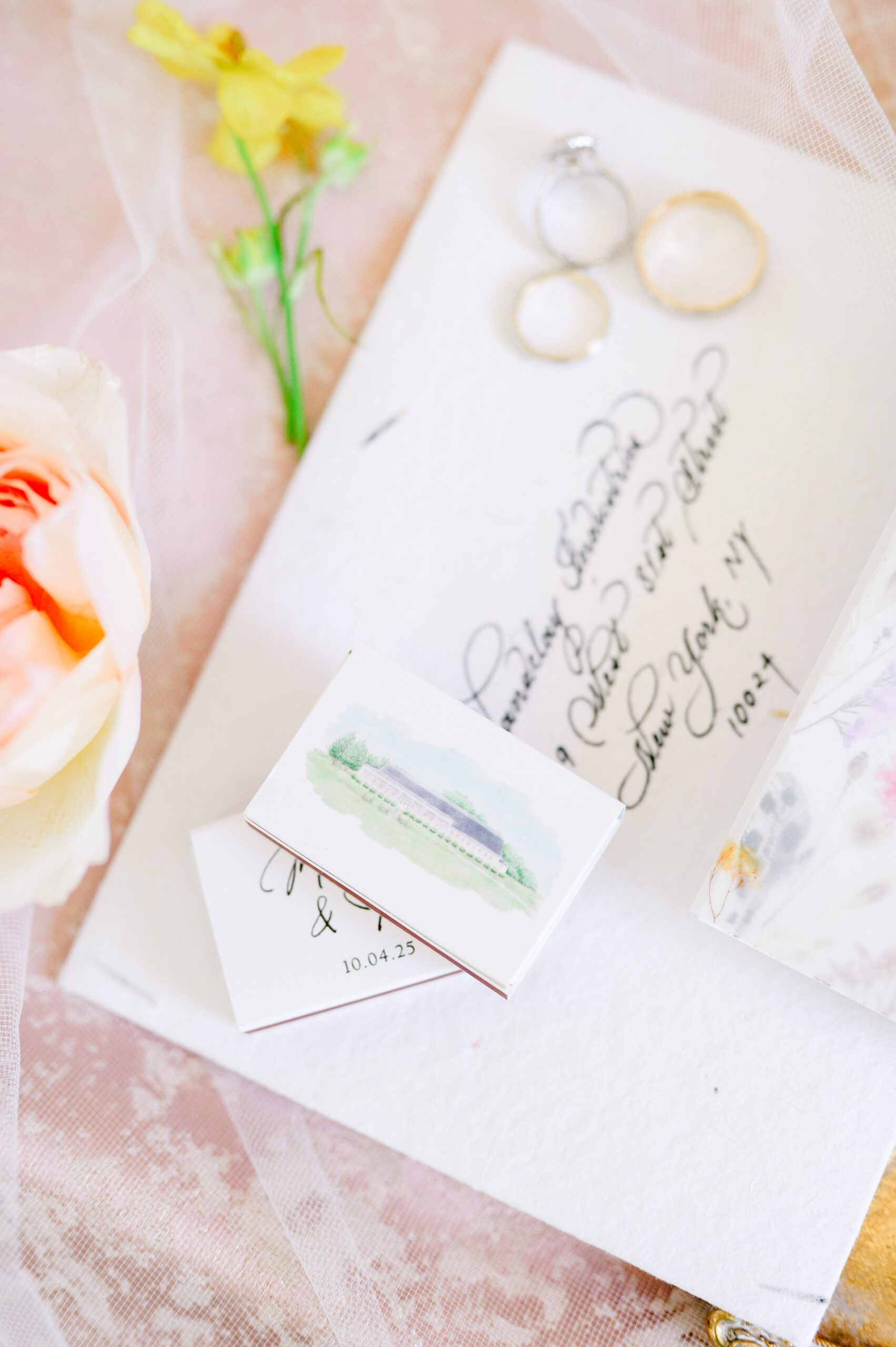 I started the morning photographing M & T’s details, and wow—they were a mix of stunning and practical: seed-paper invitations ready to bloom, matchbooks with their names and a custom Still Meadow Farm illustration, timeless jewels, and rings. Every item had purpose and meaning, perfectly setting the stage for the day.