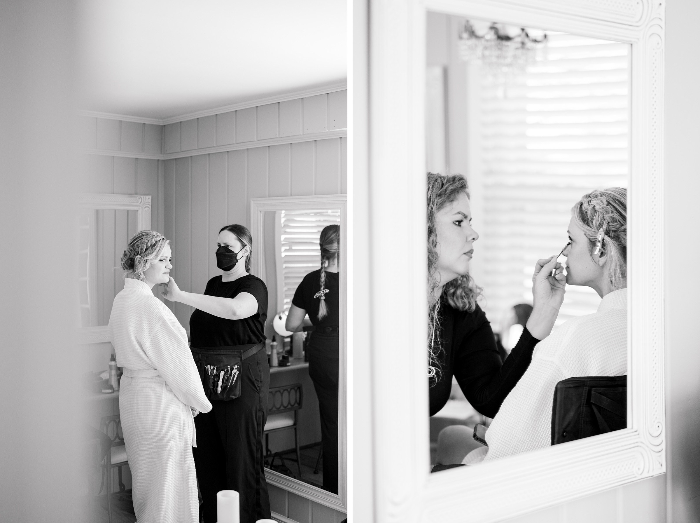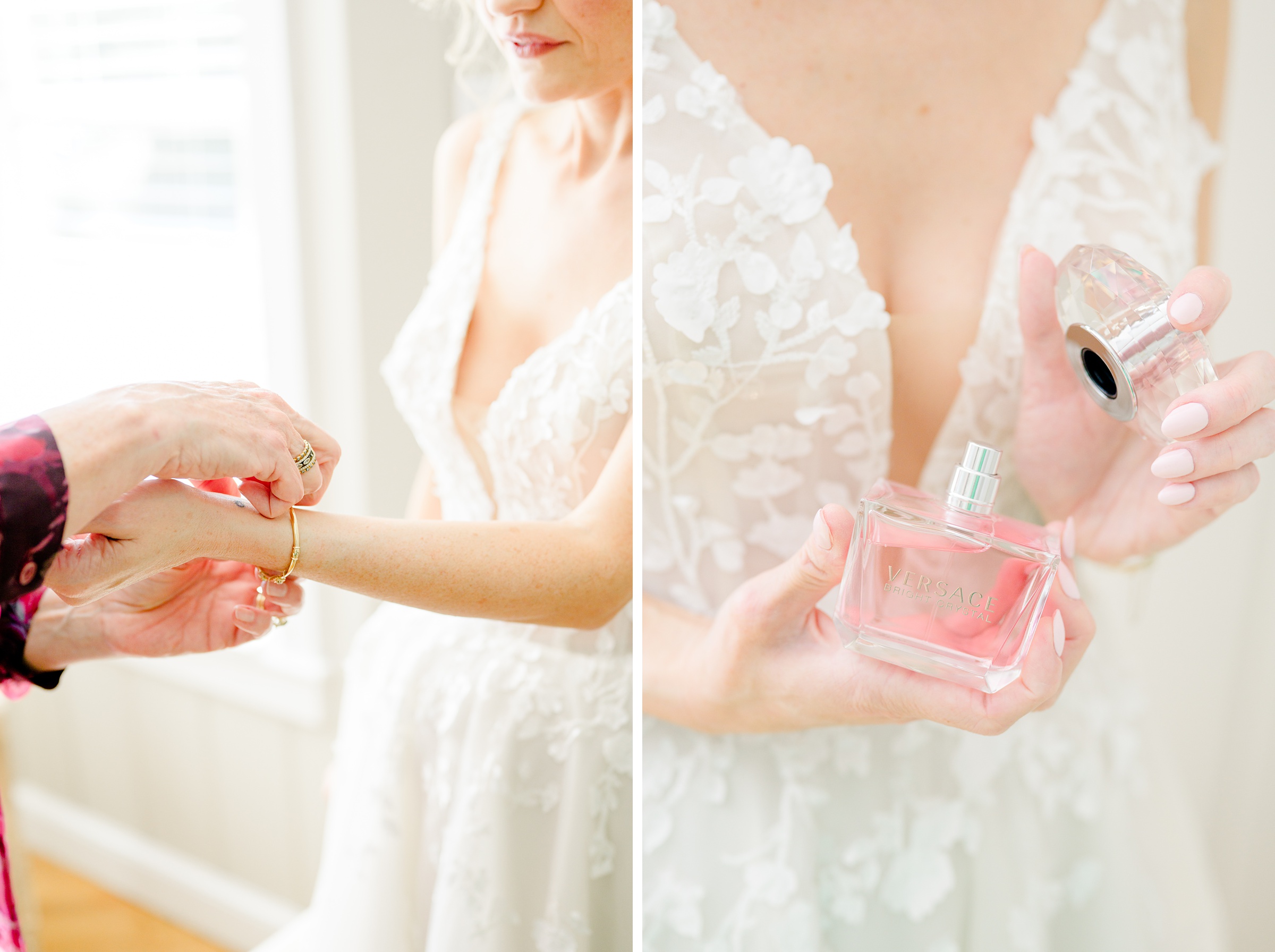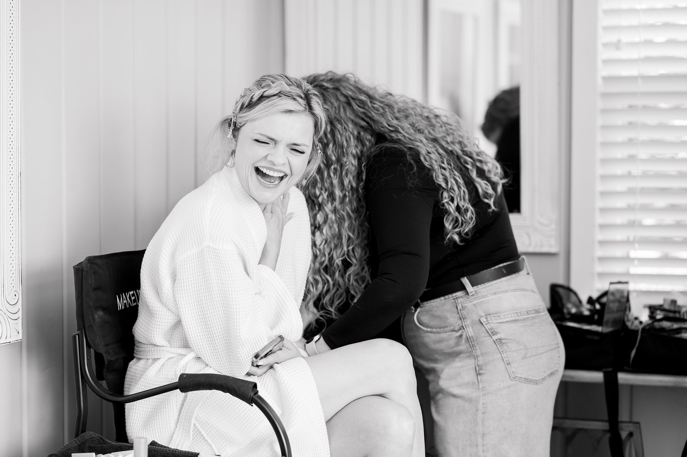 I finally got to give Emily (their planner at Peña & Co., an absolute ICON!) a big hug after months of planning. She walked me through the venue as the team set up, then guided me to the house where Madeline and her ladies were getting ready. Hair and makeup were already underway, and everything looked stunning! (Thankfully, Madeline shared her setting spray secret with me after the wedding… her makeup lasted flawlessly from start to finish!)