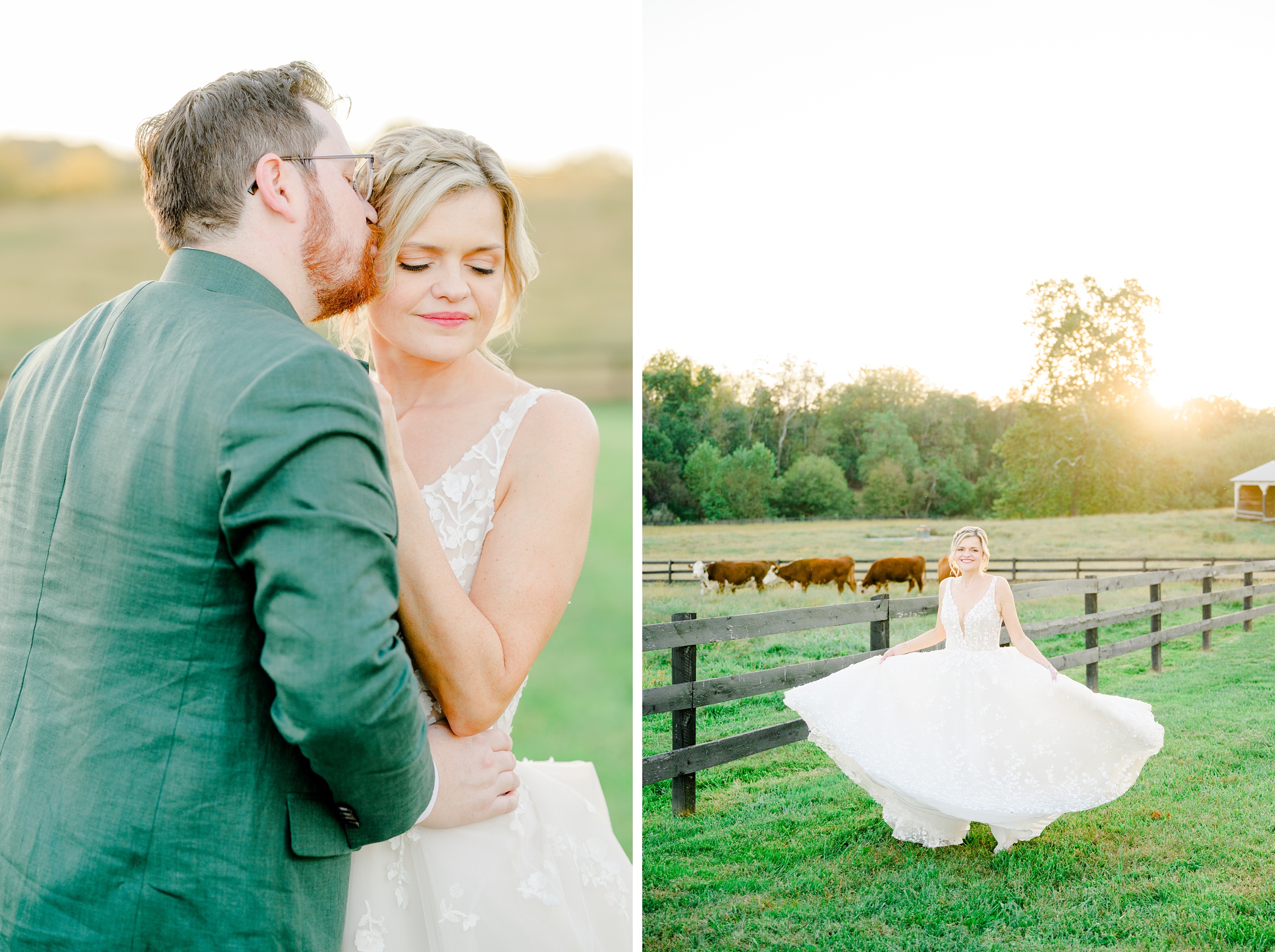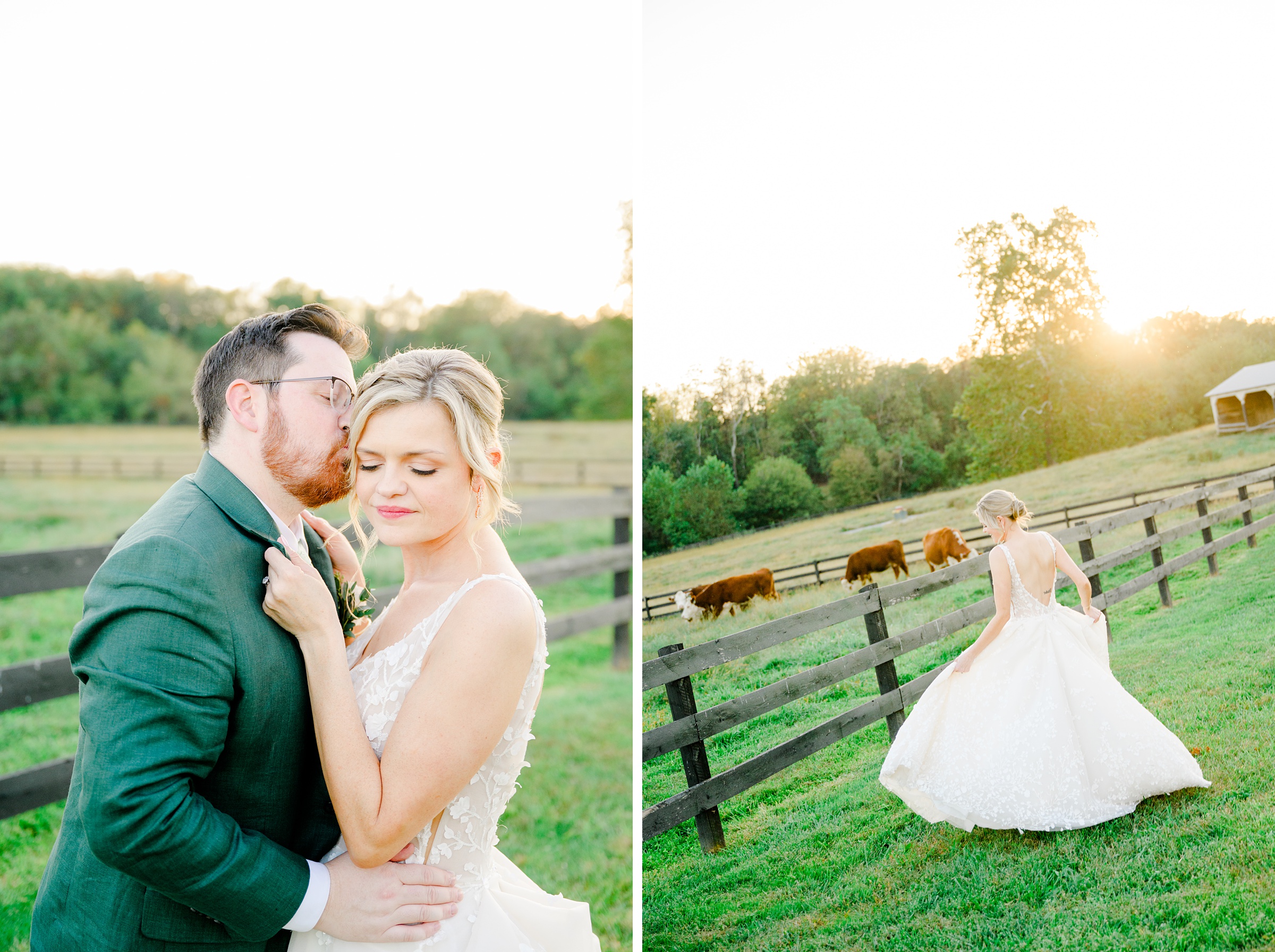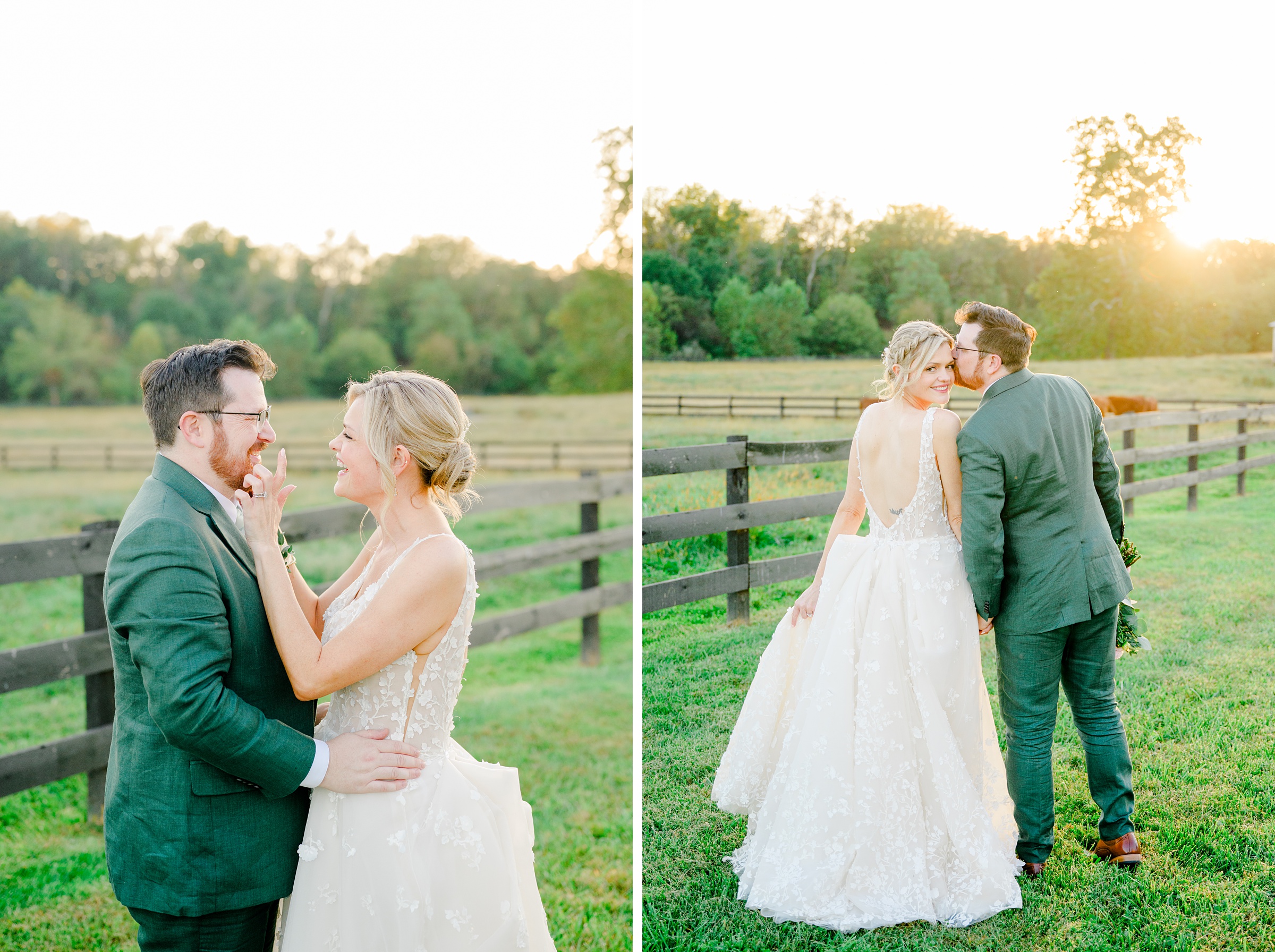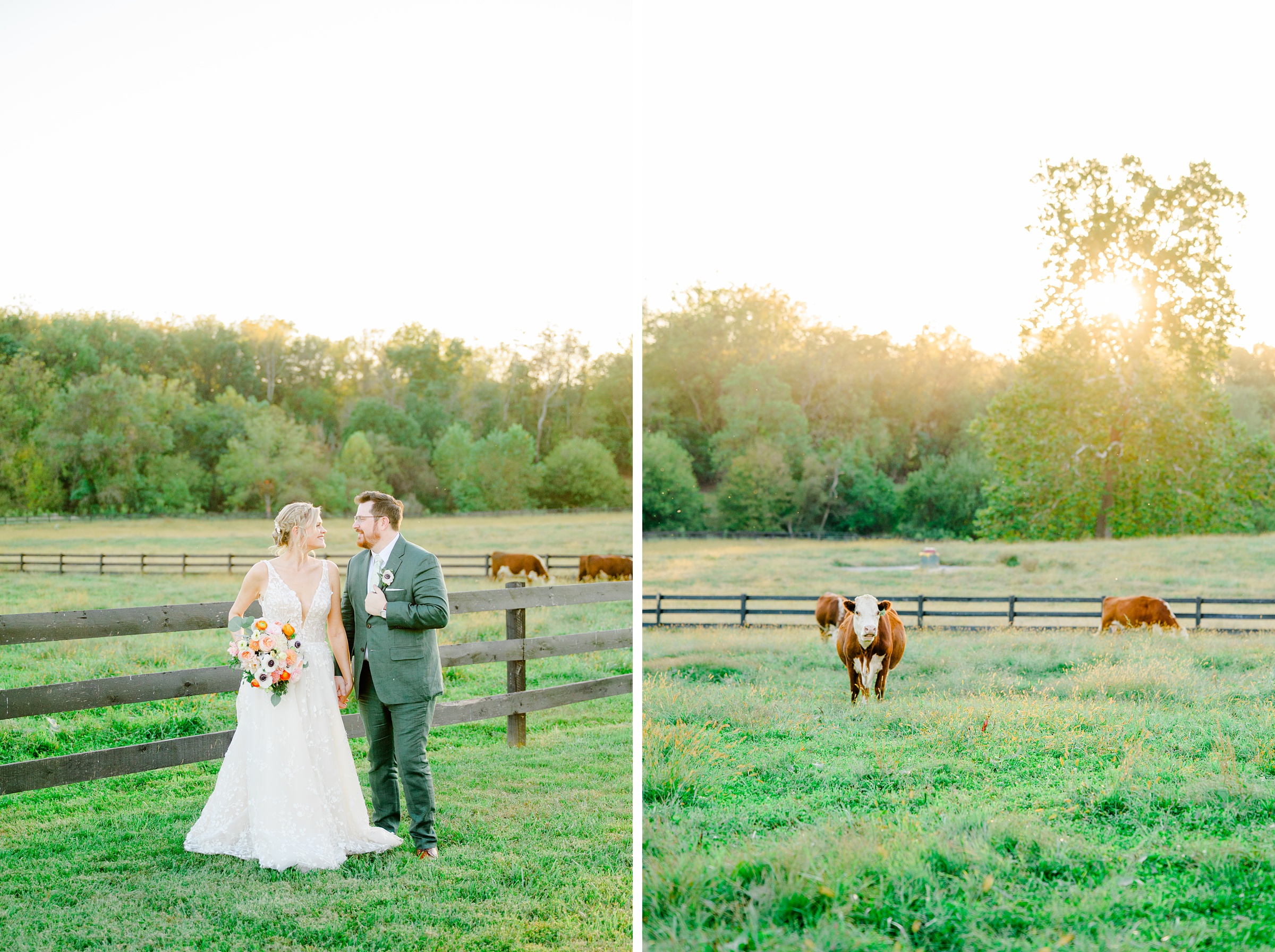 We snuck away for golden hour portraits just before the end of cocktail hour (yes, with views of the cows— obsessed!), and Madeline and Tom twirled and dipped under the sunset before returning to their guests for the last few minutes of cocktail hour.