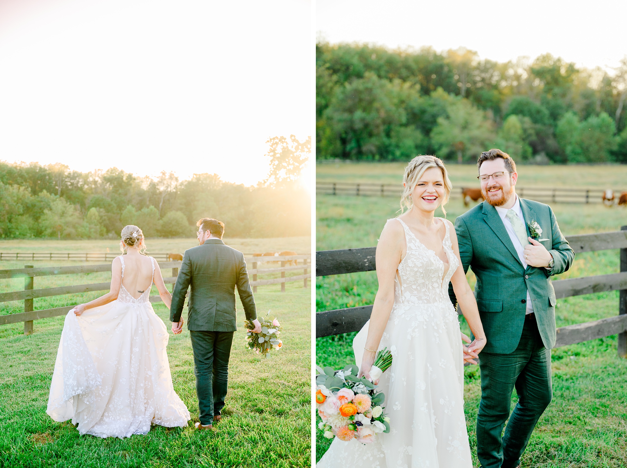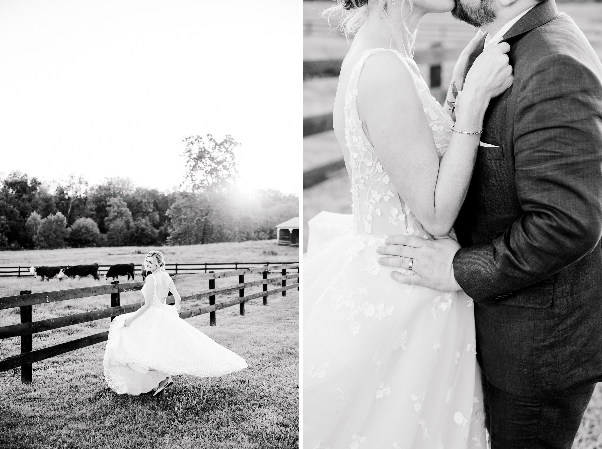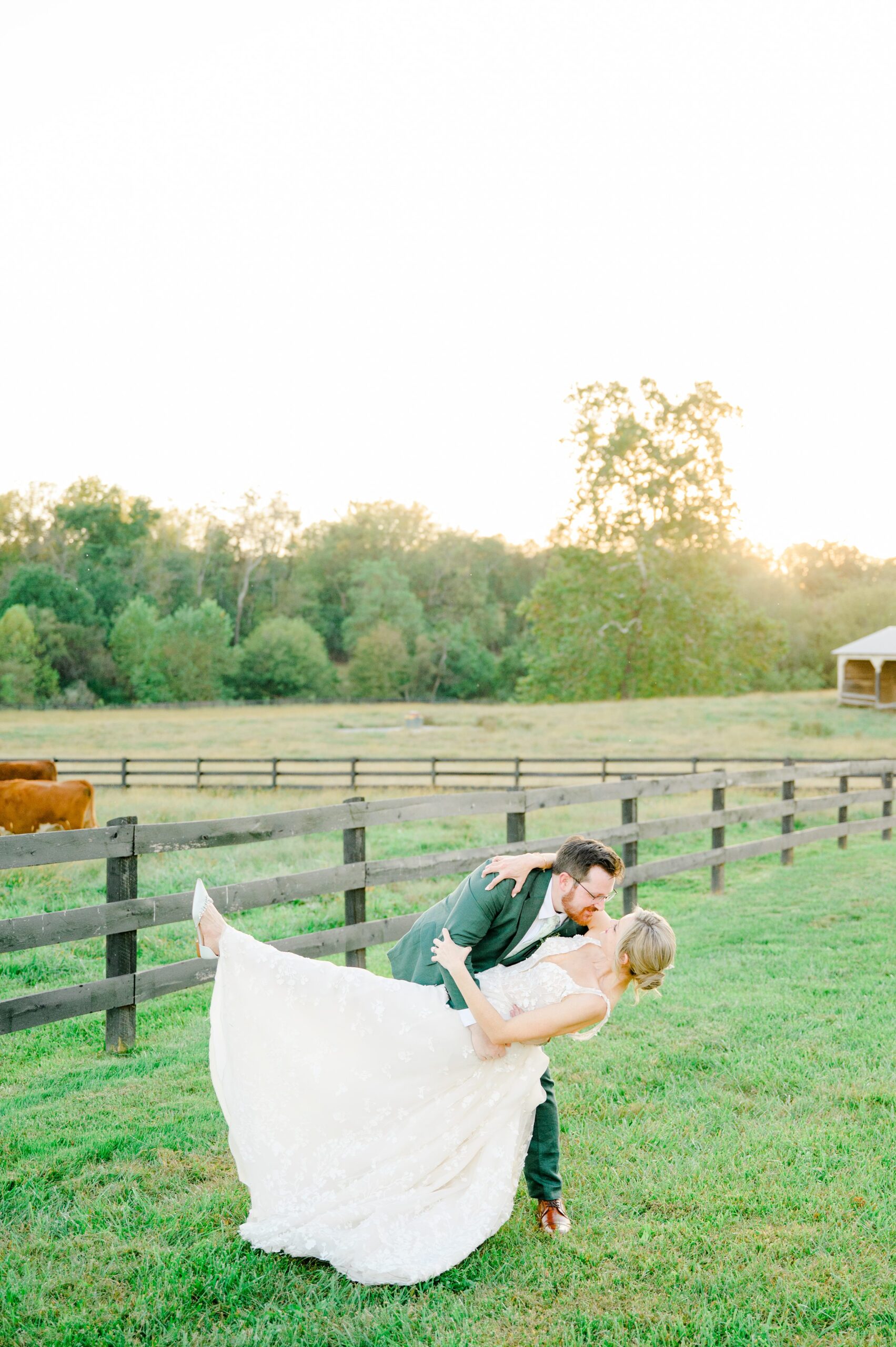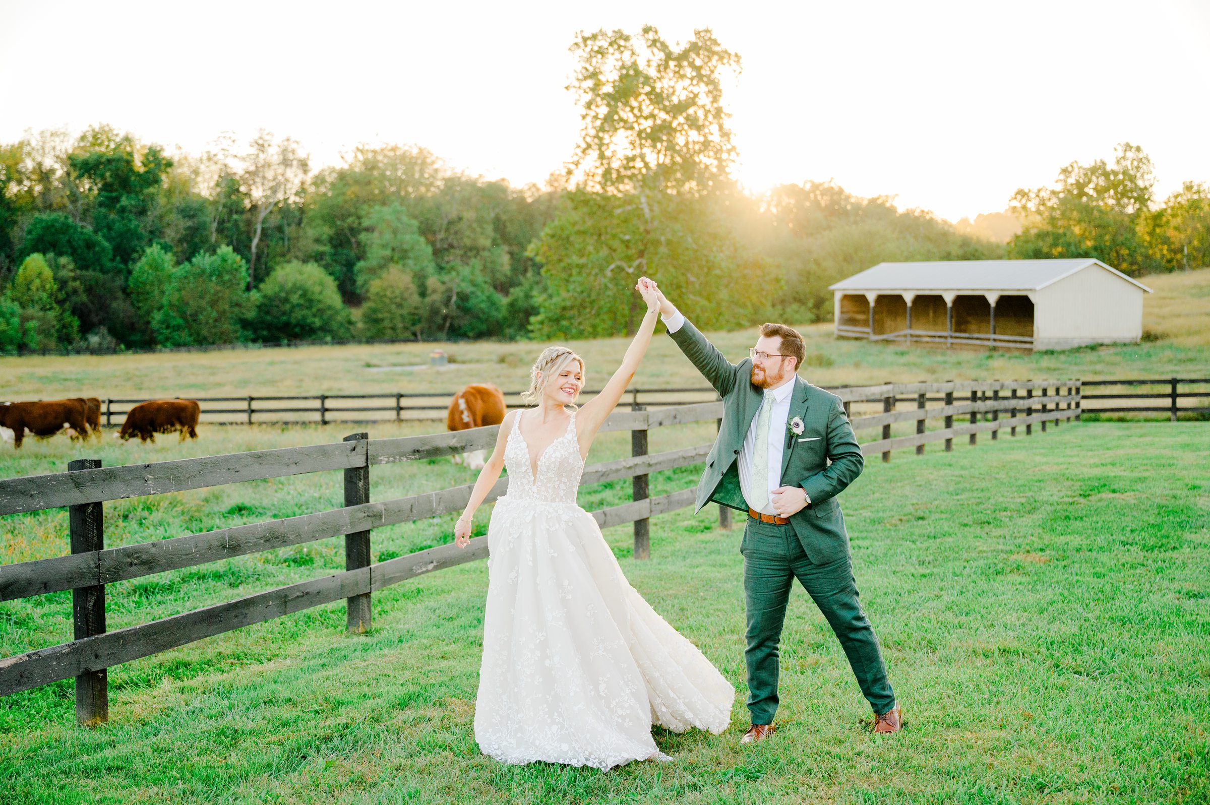 We snuck away for golden hour portraits just before the end of cocktail hour (yes, with views of the cows— obsessed!), and Madeline and Tom twirled and dipped under the sunset before returning to their guests for the last few minutes of cocktail hour.