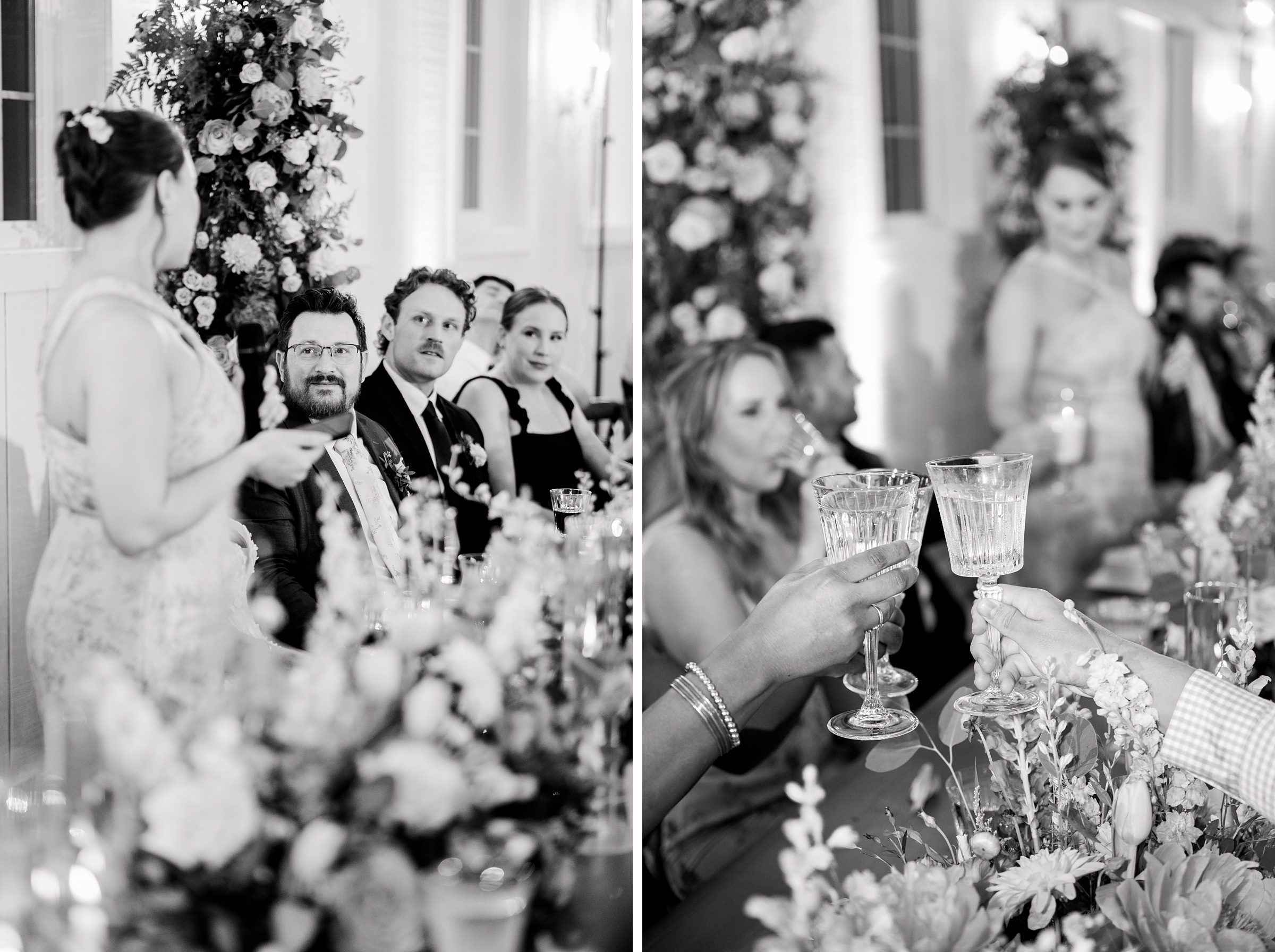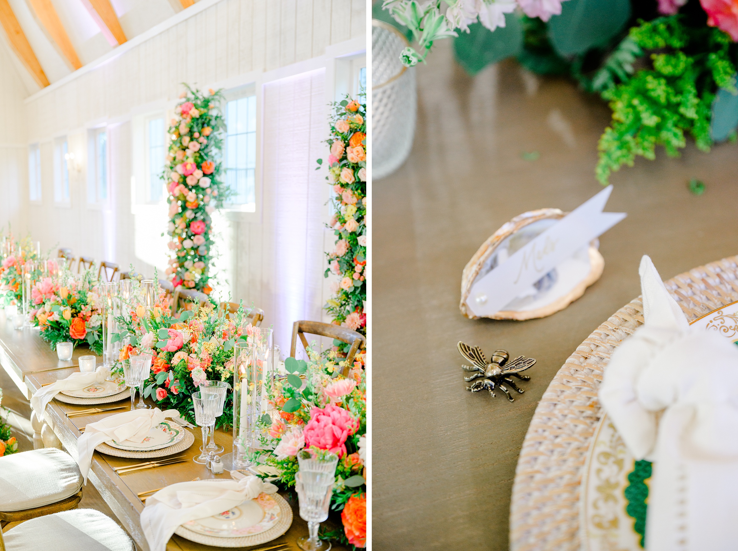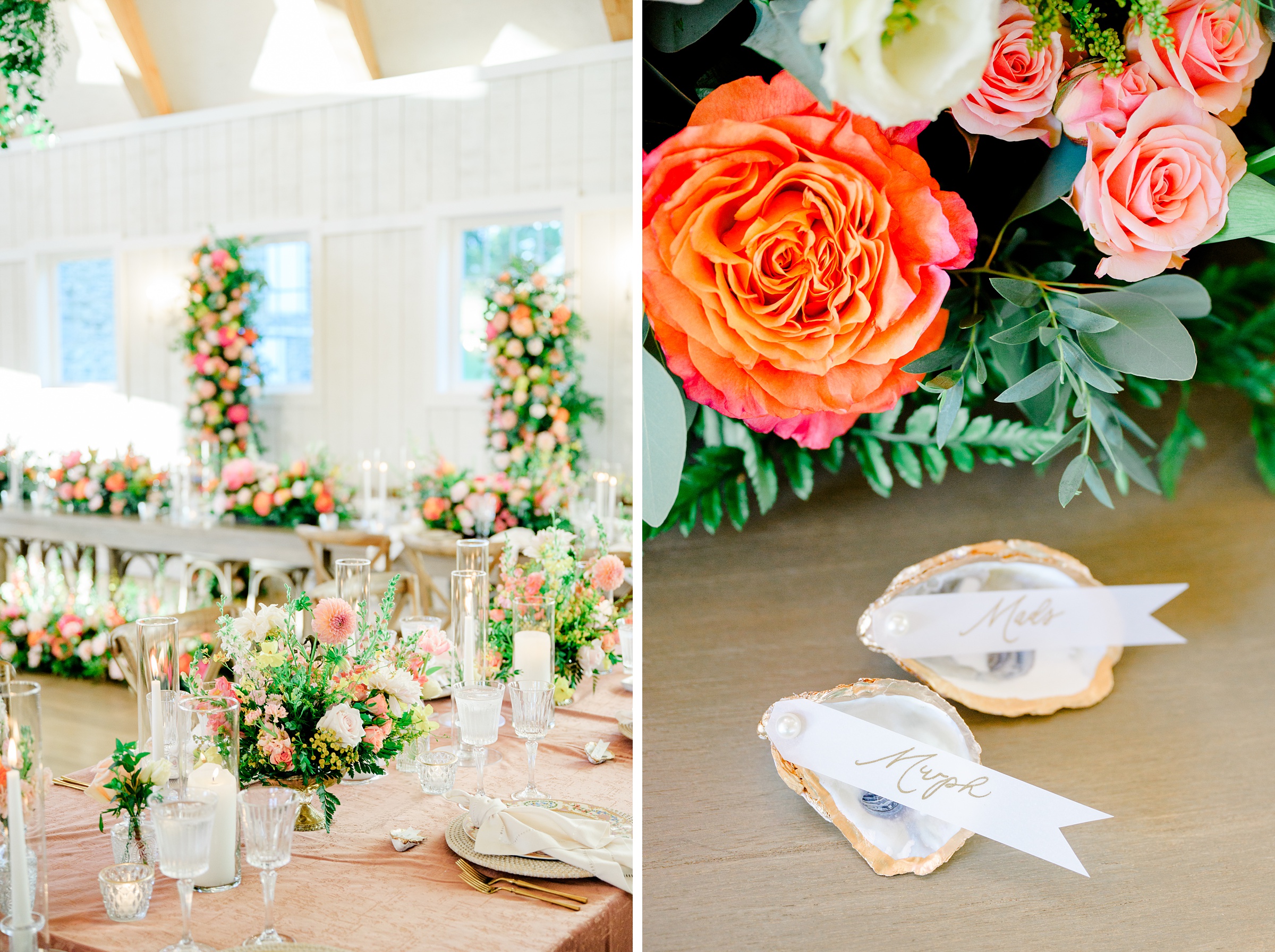While Sam captured the fun of cocktail hour— passed apps, fresh hand-shucked oysters, and signature drinks just to name a few of the highlights, I photographed the reception space, which was breathtaking.