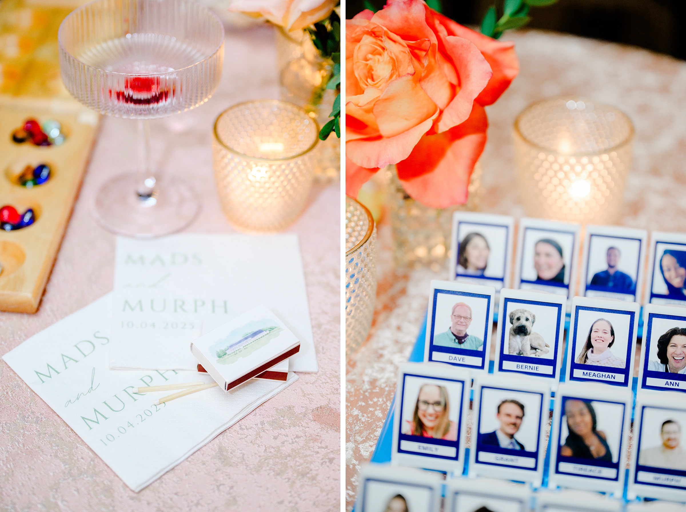 Lush florals, personalized oyster place cards, unique tablescapes, and table numbers tied to meaningful locations for M&T created a luxe yet welcoming atmosphere. Madeline and Tom’s vision, paired with their incredible vendor team, set the stage for a night everyone would remember forever!