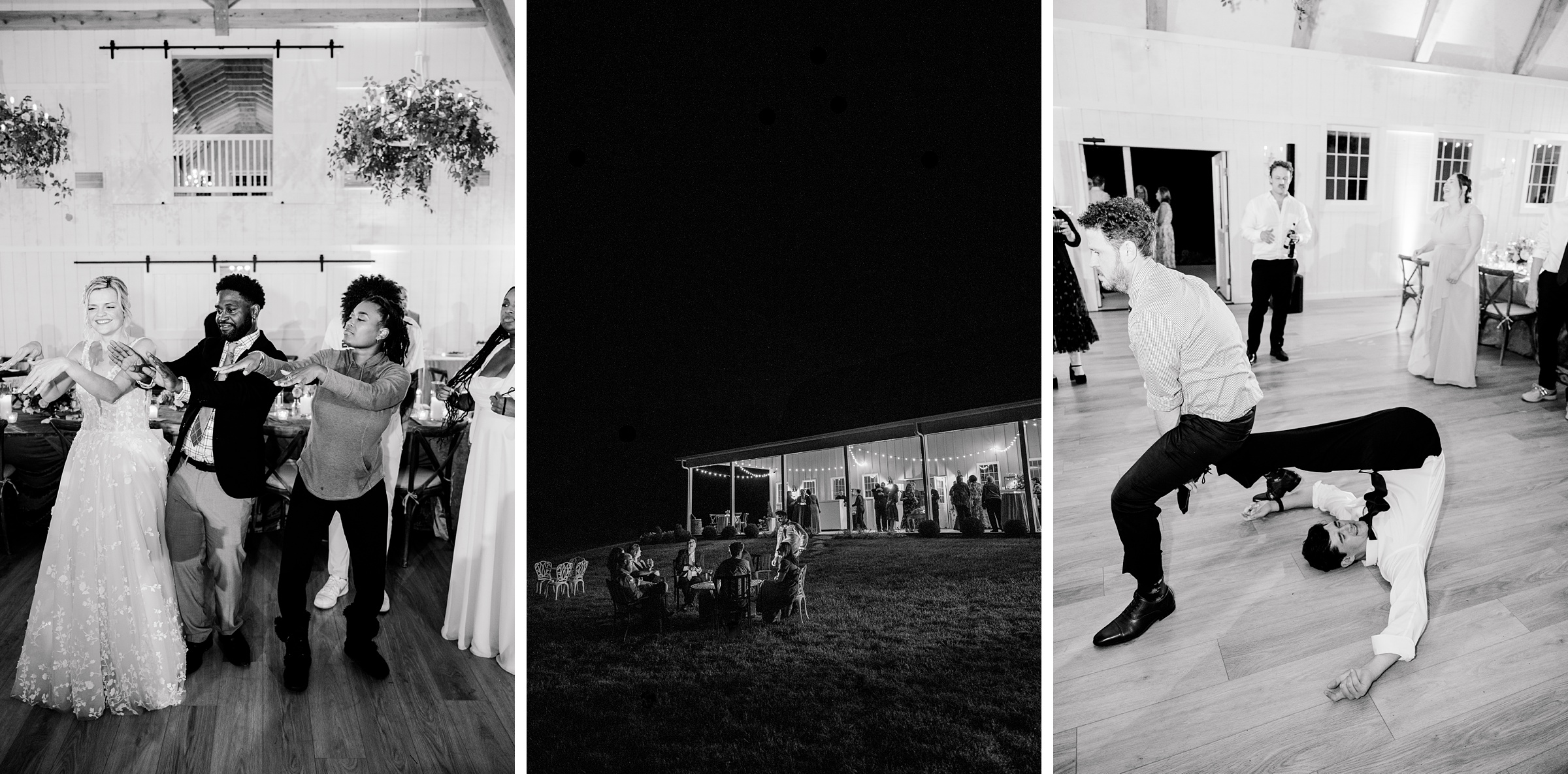 When guests entered the reception space, jaws dropped. But really… I just loved seeing their people take in the space! Every detail— from custom oyster place settings to the patterned plates creating a unique experience at each seat— was thoughtfully curated. The space felt both luxurious and welcoming. I just love that the reception space at Still Meadow Farm is able to be transformed to align with a couple’s unique vision! It was the perfect hosting space for a beautiful evening and every last detail made the ambience that much more special.