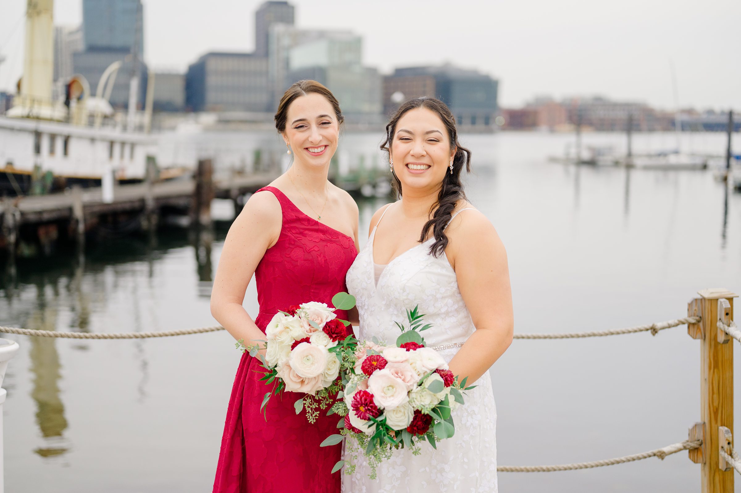 November had officially decided she wanted to lean into winter — it was chilly, cloudy, and breezy in the kind of way that makes you snag a coat, just in case… but somehow still mild enough for outdoor portraits with a few strategic warm-up breaks. These two shared their first look on the Baltimore Harbor with big smiles, a few happy tears, and the sweetest personal vows to follow. Any nerves from before melted instantly and turned straight into joy.