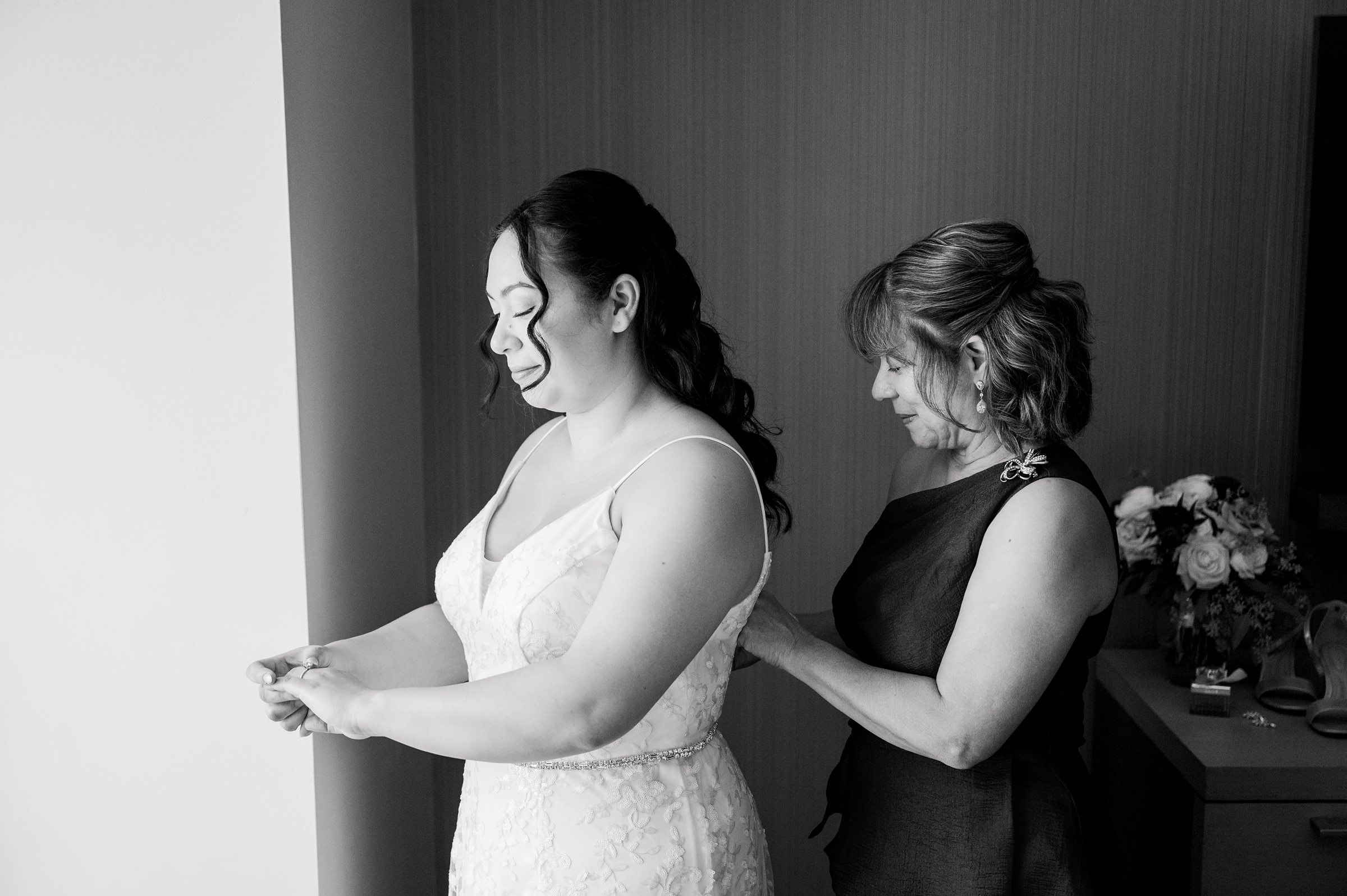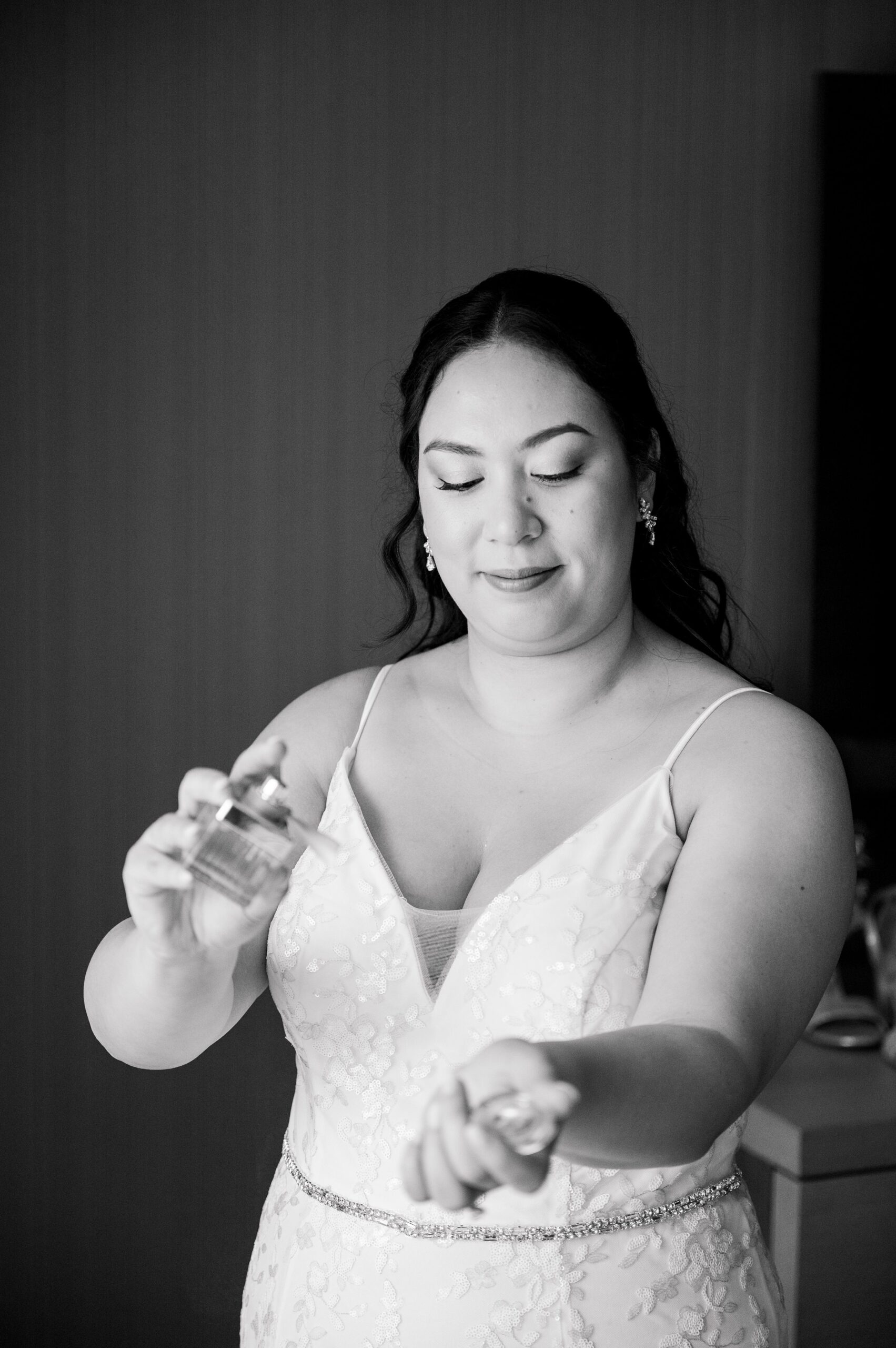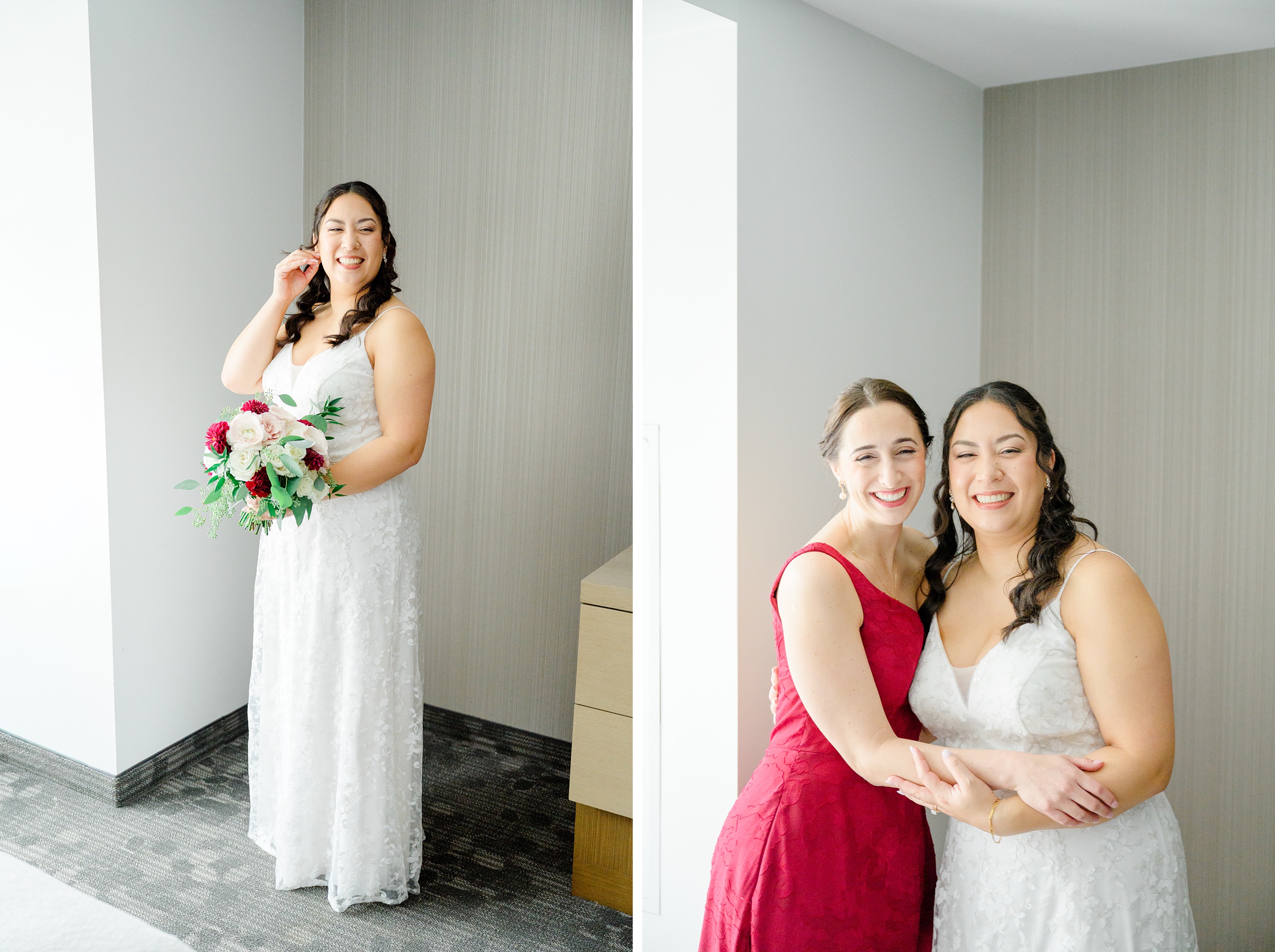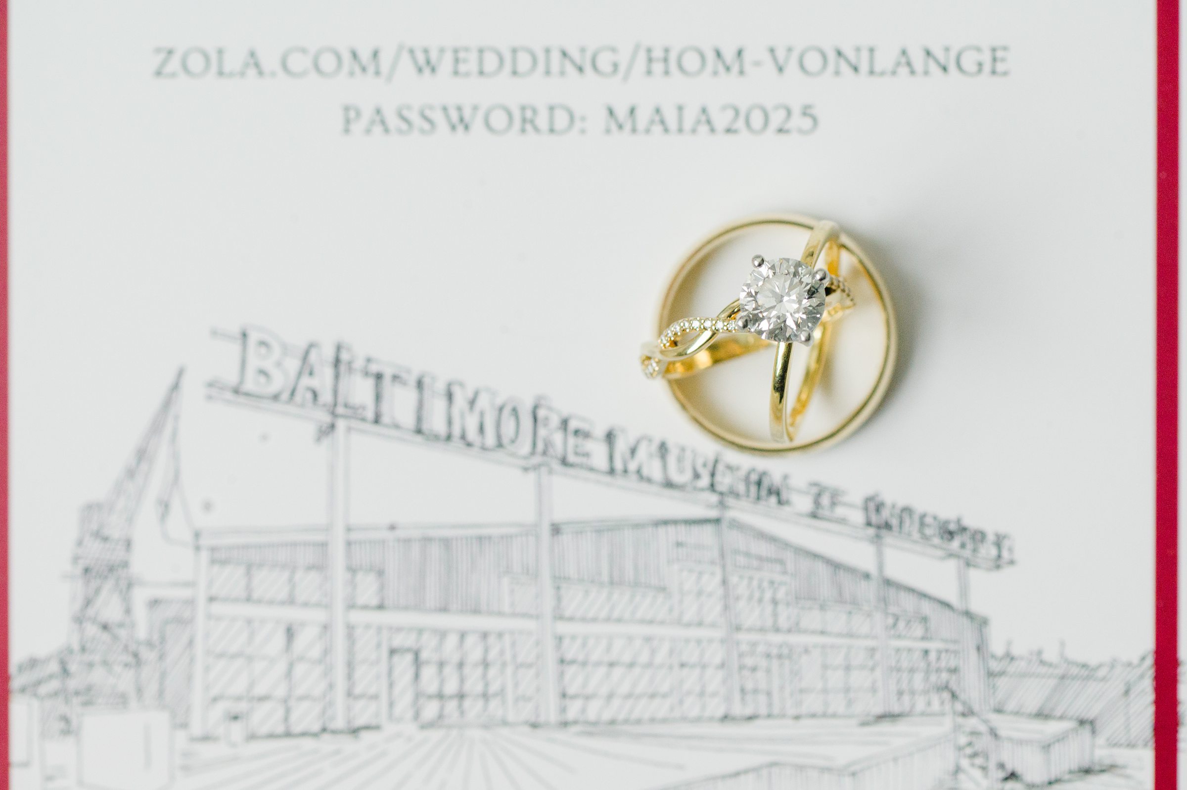 It was that just-right blend of excitement and peace… the kind of atmosphere that makes you breathe a little lighter because you know the day is already off to the best possible start. Hair and makeup was in full swing, so I got to work styling their stationery, rings, florals, and all the thoughtful little pieces that told the story of their day. Soon, it was time to get dressed! You could feel the nerves building, but Melissa and Tyler had a first look planned — and the peace knowing they would soon be together carried them right any anxieties. Before heading to the Baltimore Museum of Industry, Melissa shared an emotional first look with her dad outside the hotel, and then we were off to the harbor.
