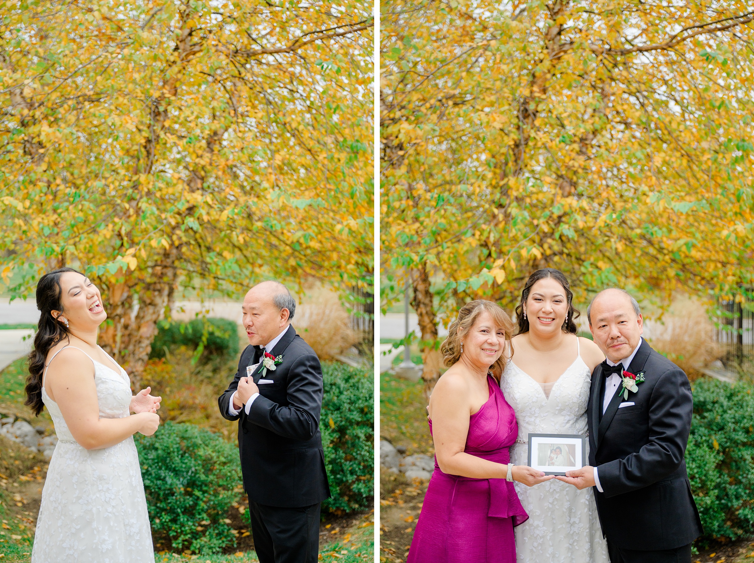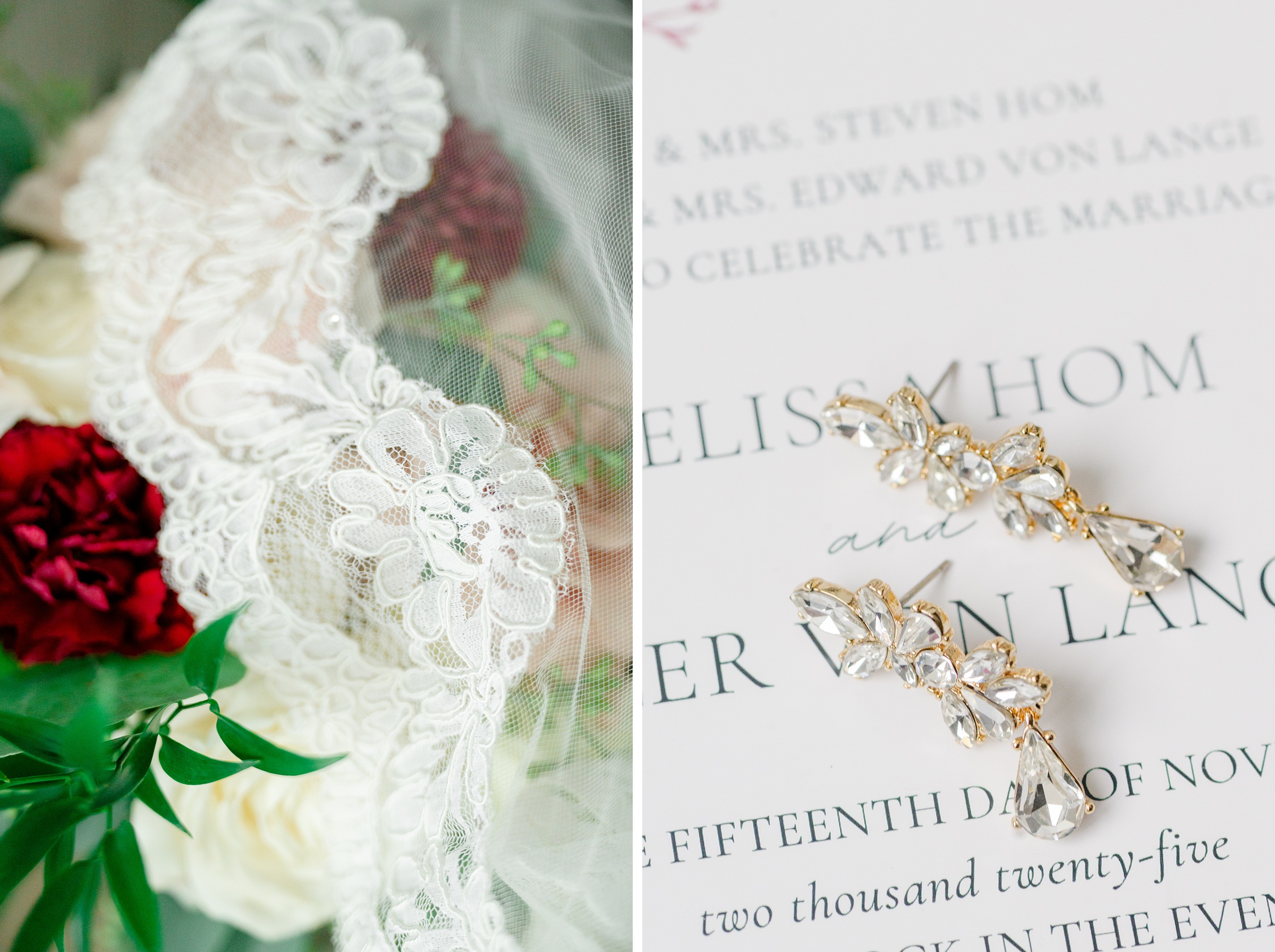 After heading inside for a moment to warm up, Melissa slipped on her veil— delicately embellished with pieces of her mom’s wedding dress.