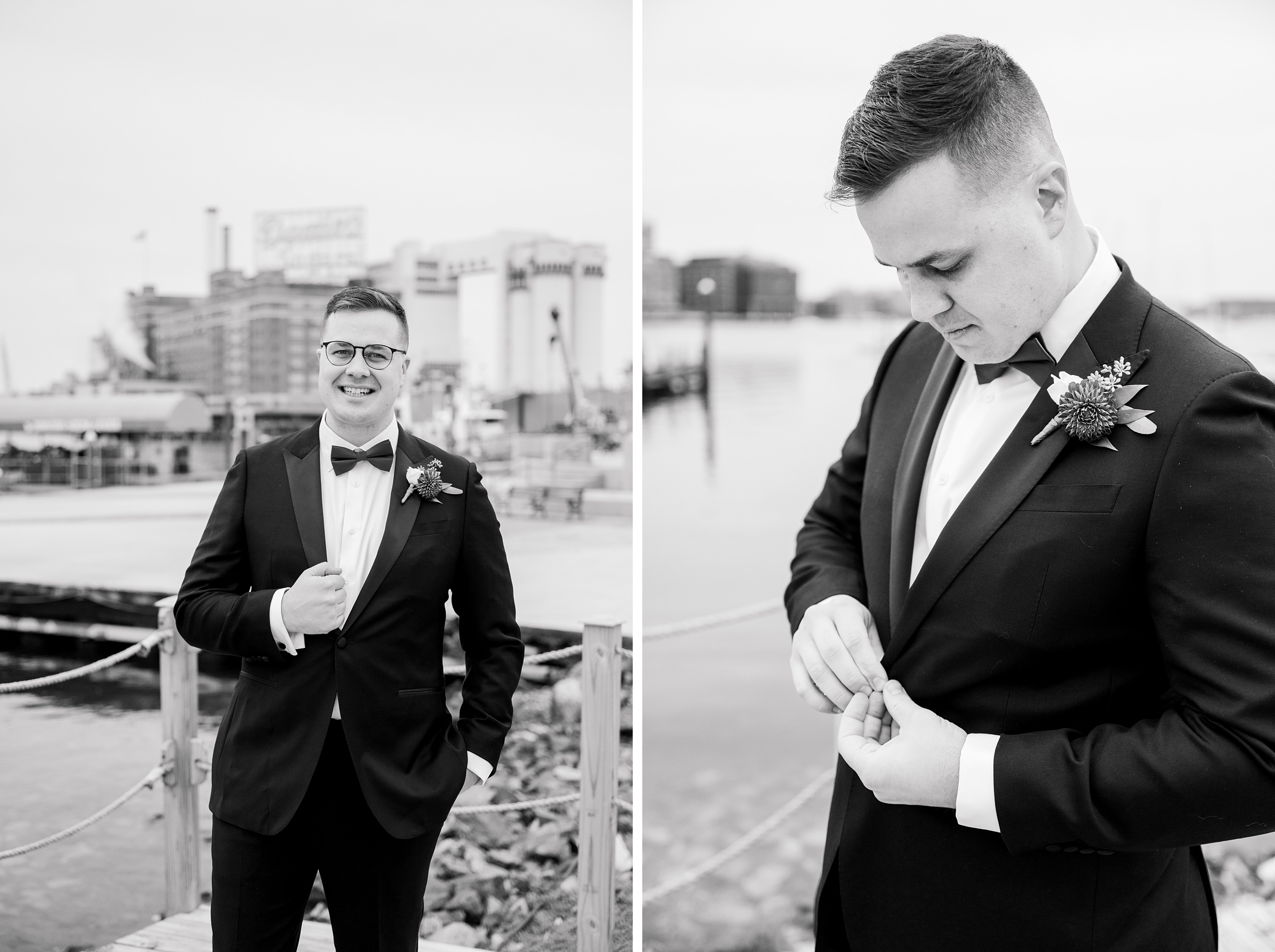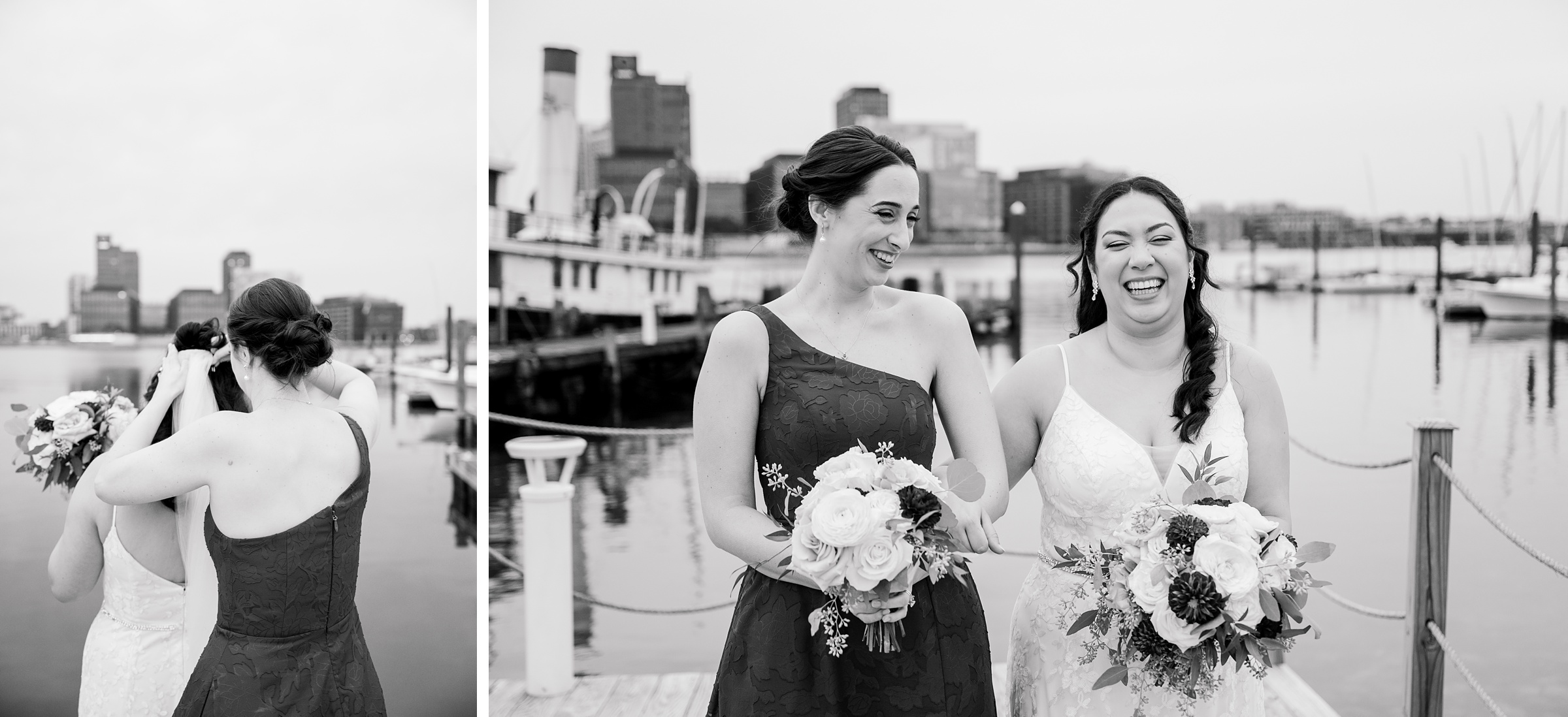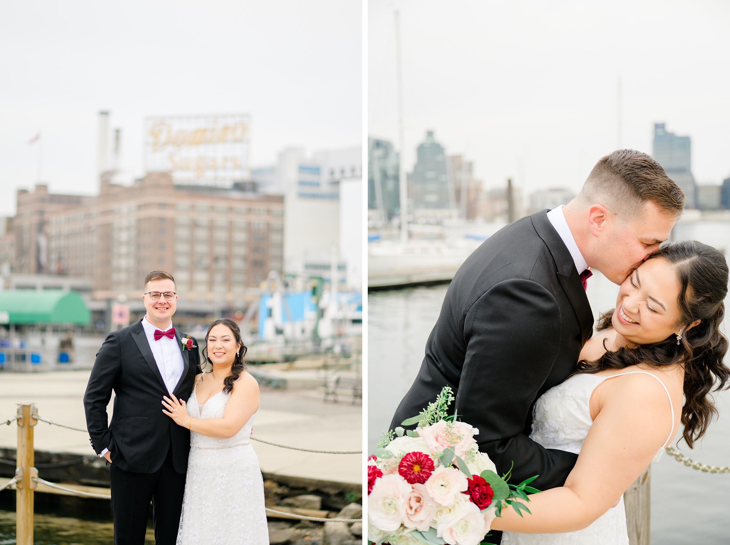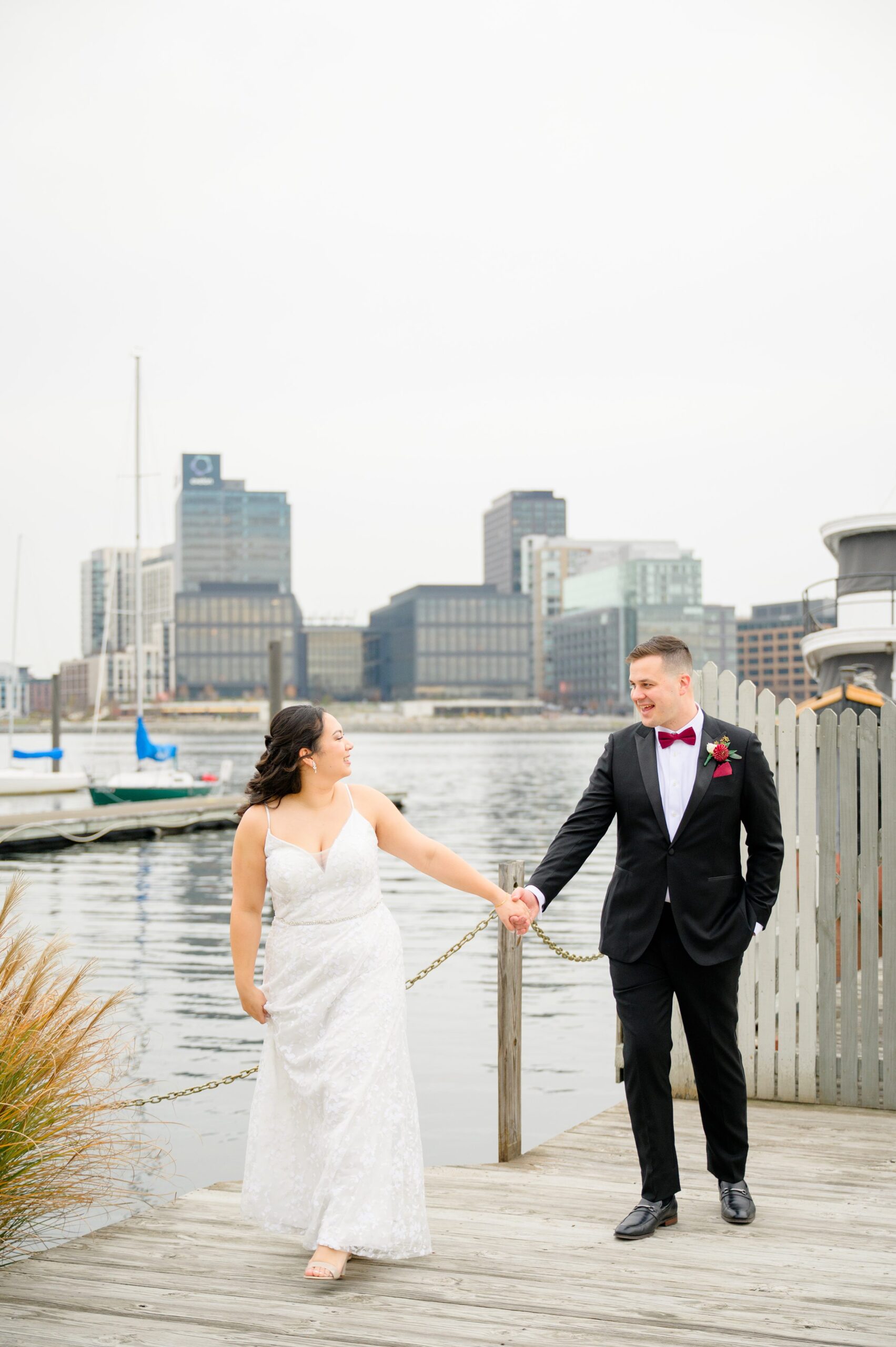 November had officially decided she wanted to lean into winter — it was chilly, cloudy, and breezy in the kind of way that makes you snag a coat, just in case… but somehow still mild enough for outdoor portraits with a few strategic warm-up breaks. These two shared their first look on the Baltimore Harbor with big smiles, a few happy tears, and the sweetest personal vows to follow. Any nerves from before melted instantly and turned straight into joy.