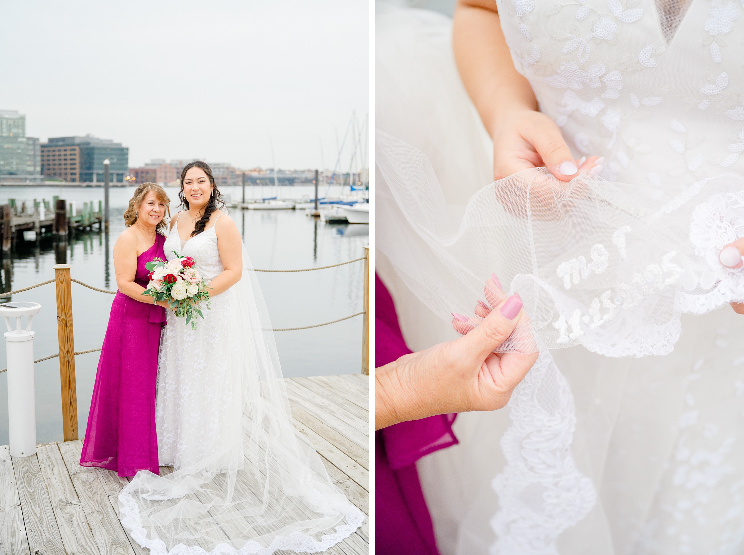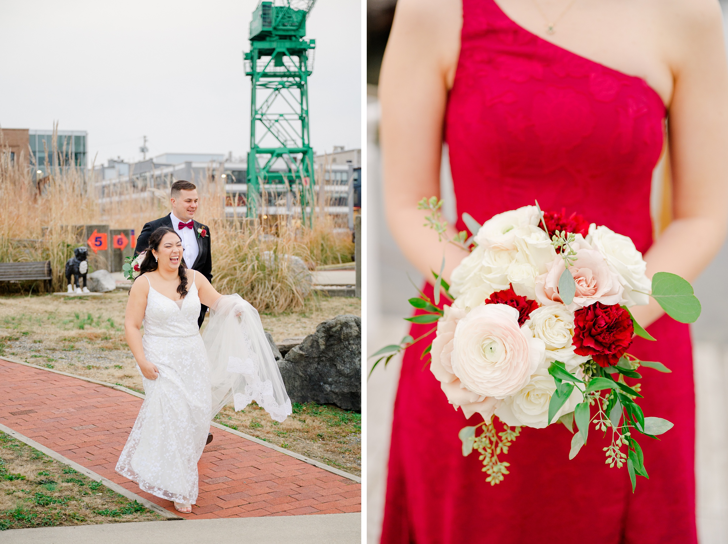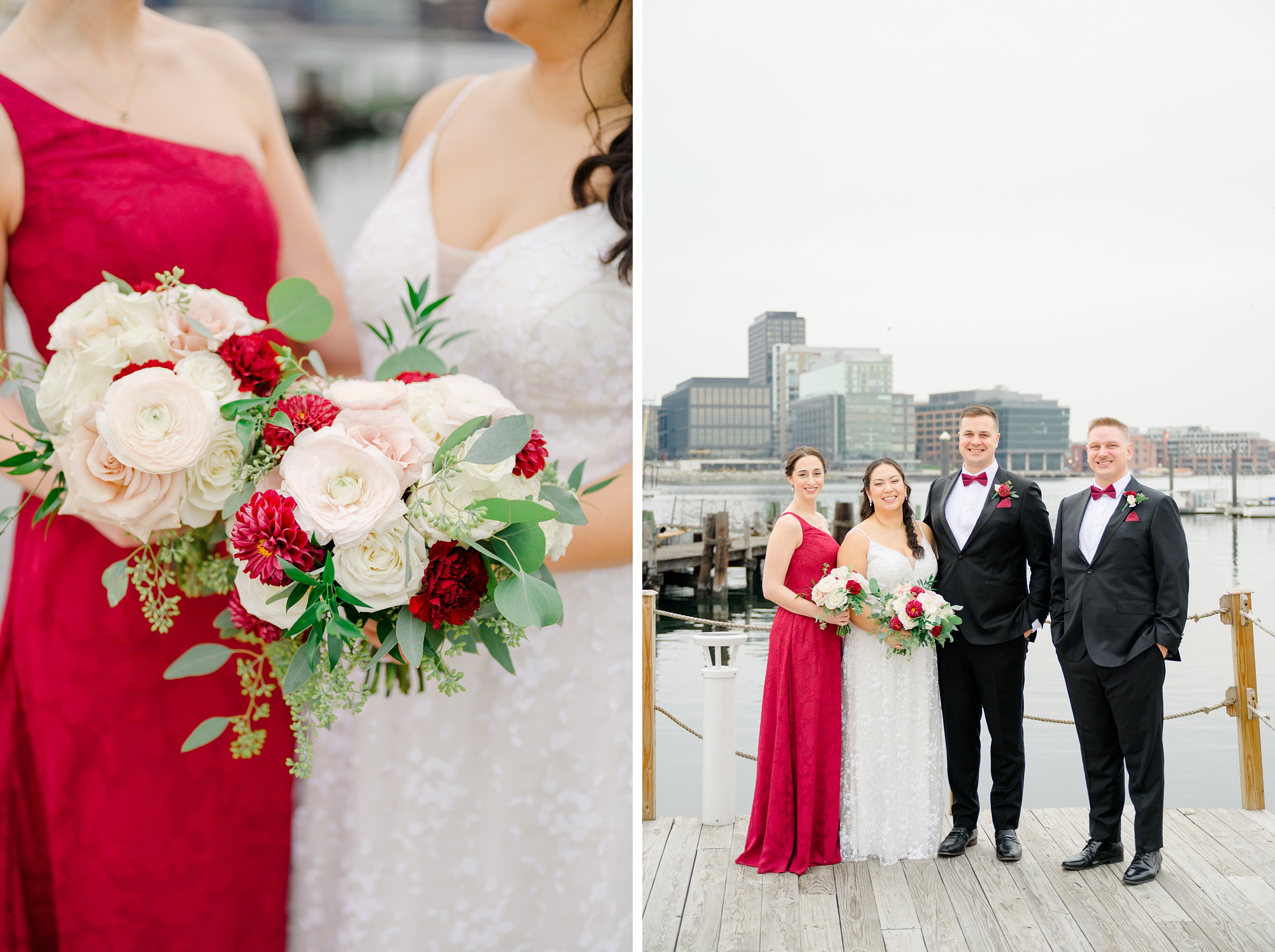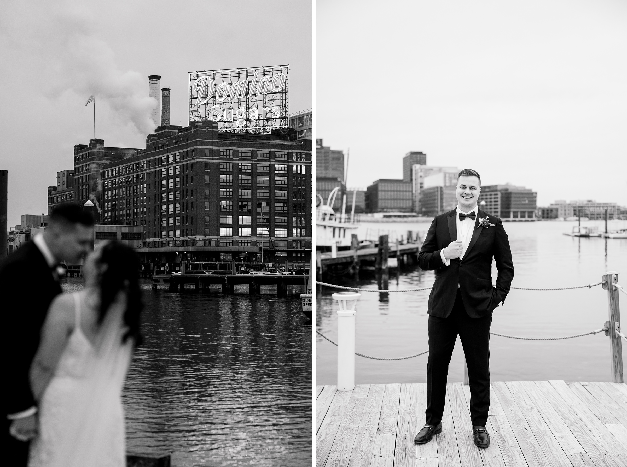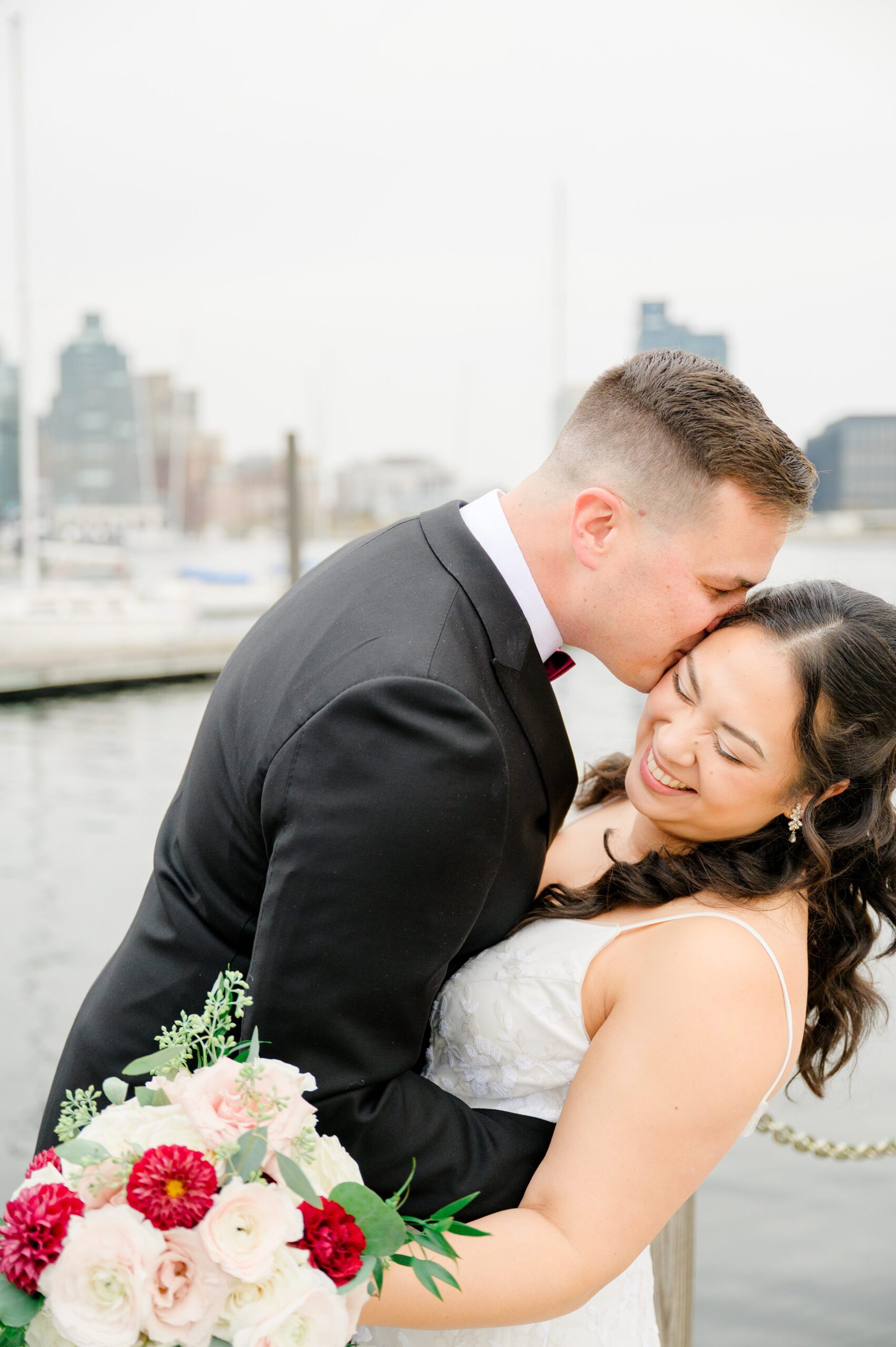 November had officially decided she wanted to lean into winter — it was chilly, cloudy, and breezy in the kind of way that makes you snag a coat, just in case… but somehow still mild enough for outdoor portraits with a few strategic warm-up breaks. These two shared their first look on the Baltimore Harbor with big smiles, a few happy tears, and the sweetest personal vows to follow. Any nerves from before melted instantly and turned straight into joy.