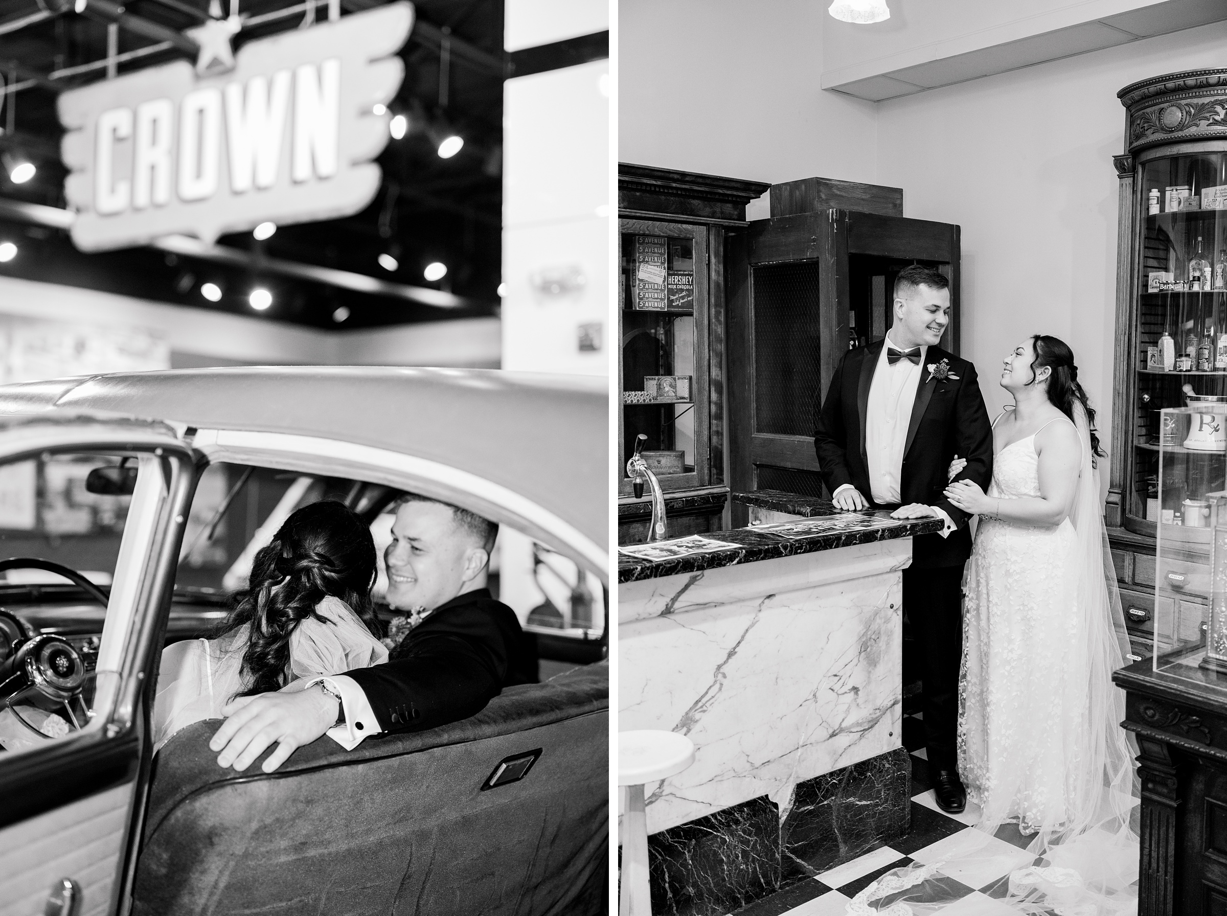 Cocktail hour kicked off as the printing press fired up and the custom print Melissa and Tyler designed was passed along to guests… such a fun and unique touch! Their signature drinks flowed, guests explored the museum, and the reception space took shape behind the scenes.