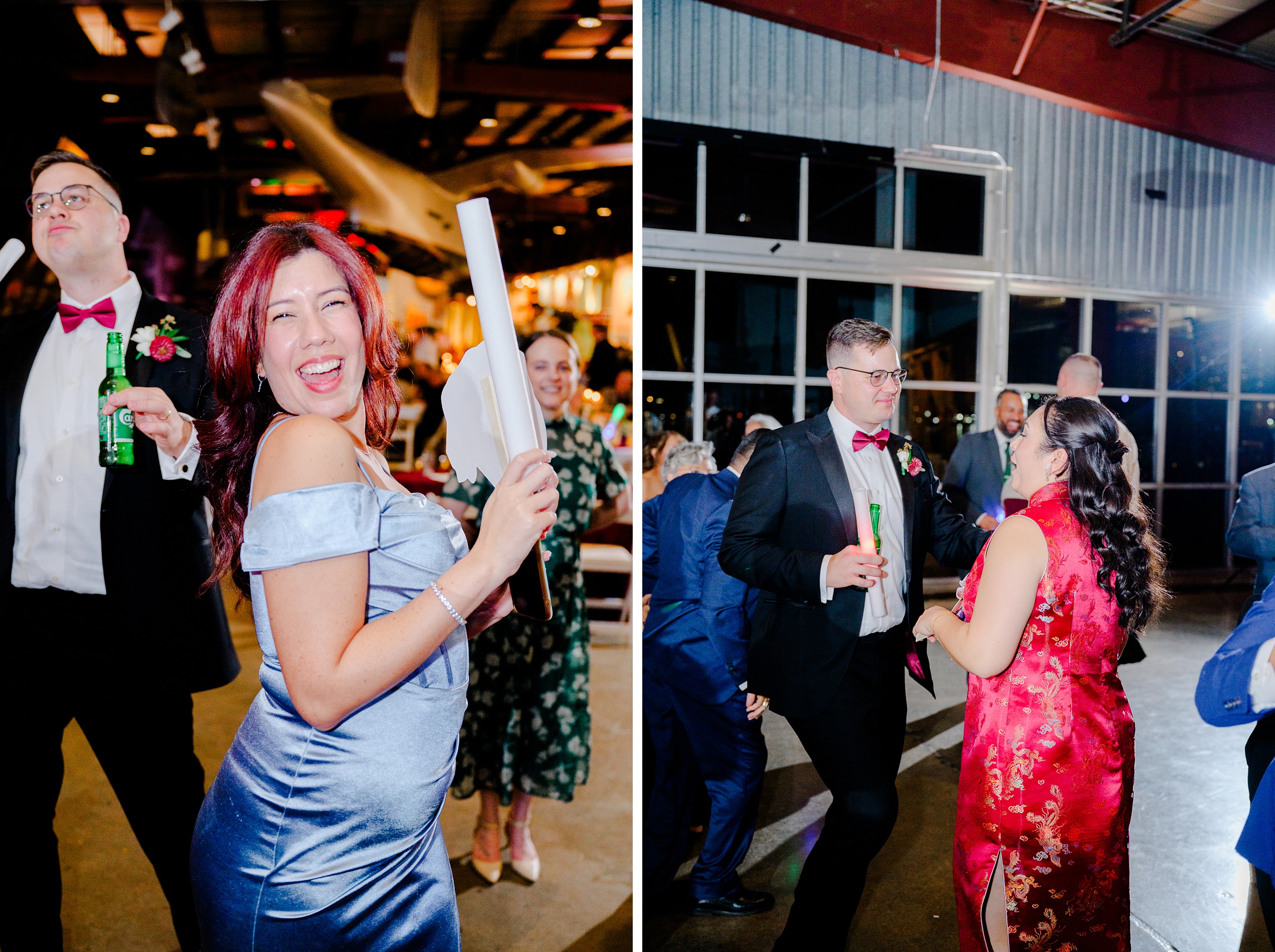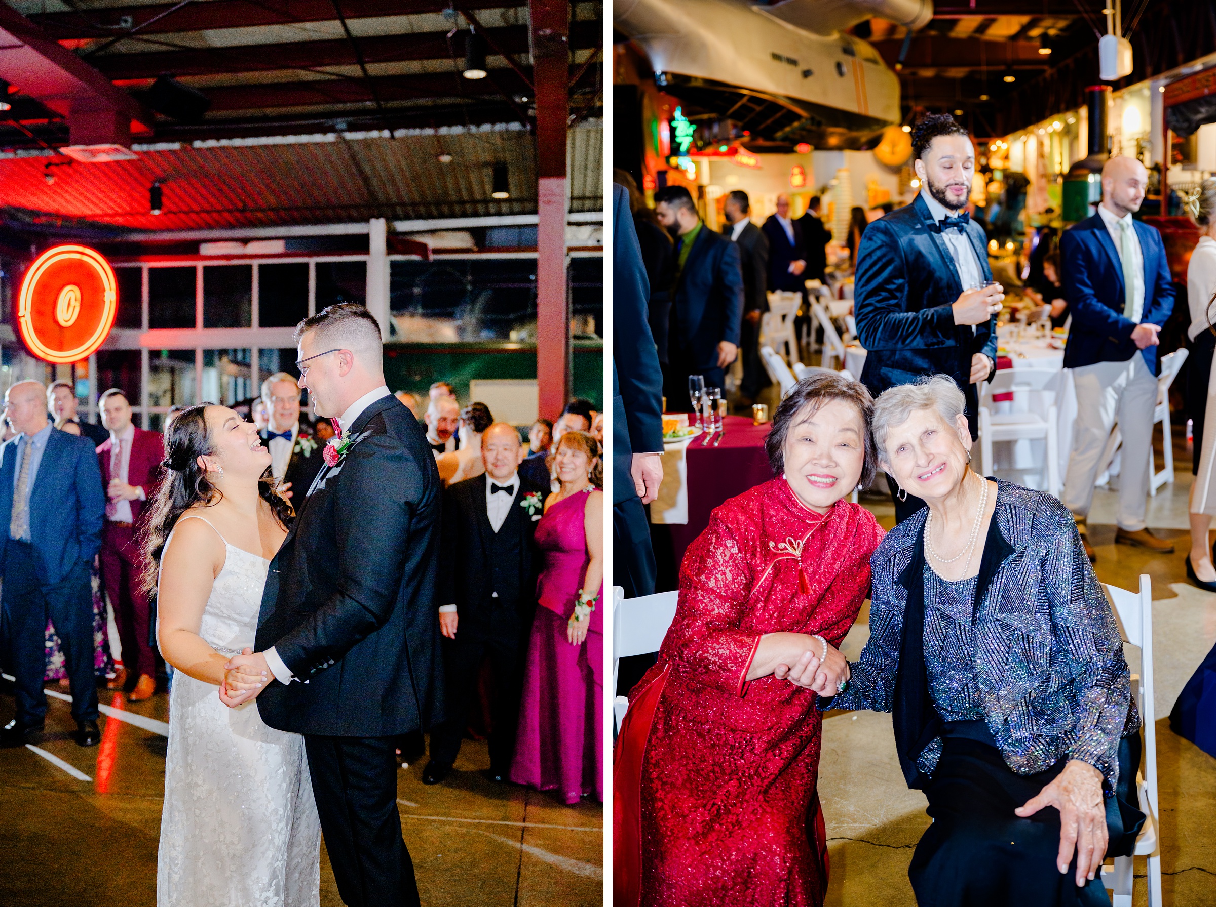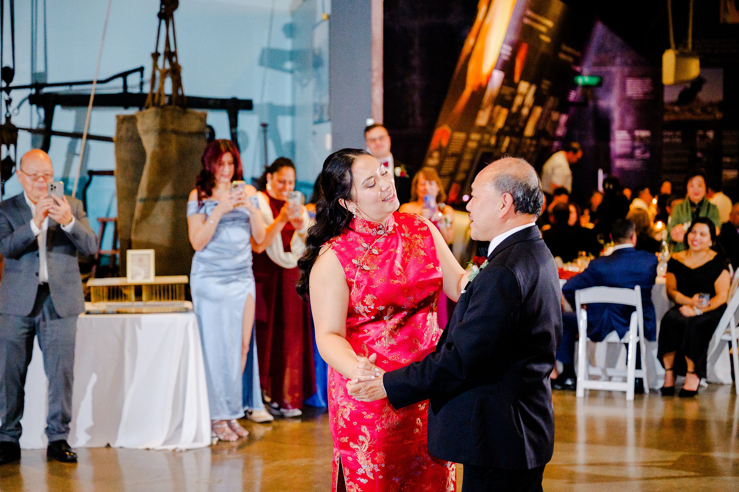 Heartfelt toasts and a delicious dinner followed… and then the real party started. Melissa changed into a stunning red bridal qipao — the most beautiful nod to her heritage — and the dance floor came alive. I’m not exaggerating when I say the energy was unreal. Their friends and family showed up ready to celebrate, and it was the perfect cherry on top of an already unforgettable Baltimore Museum of Industry wedding.