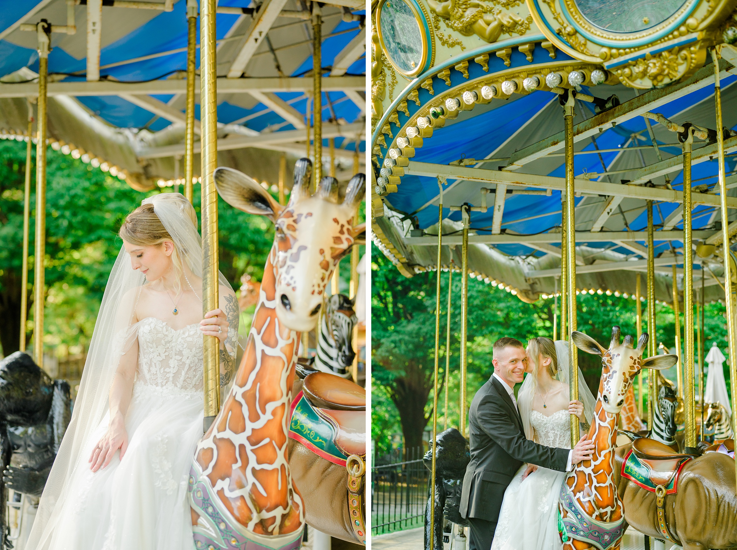Then, we headed to the carousel for even more sweet moments. There’s something so magical and colorful about a carousel, and Kourtney and Sean brought that whimsy to life. The two of them laughed and held each other close, and it felt like something out of a fairytale!