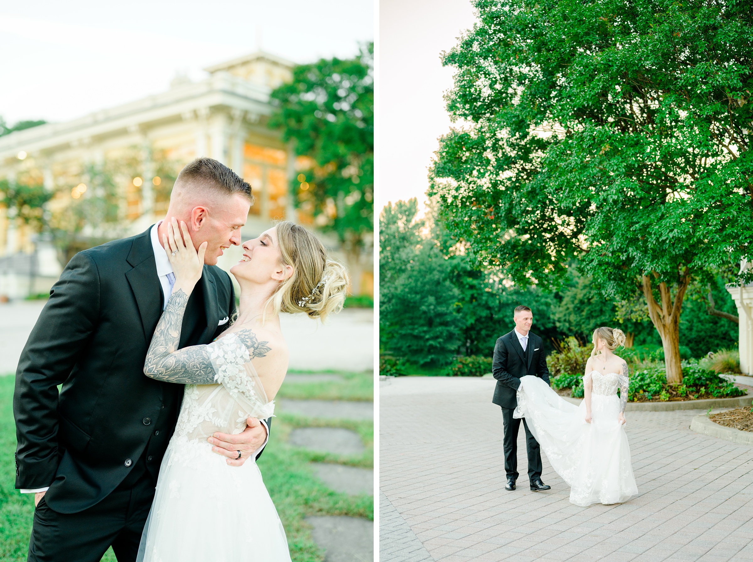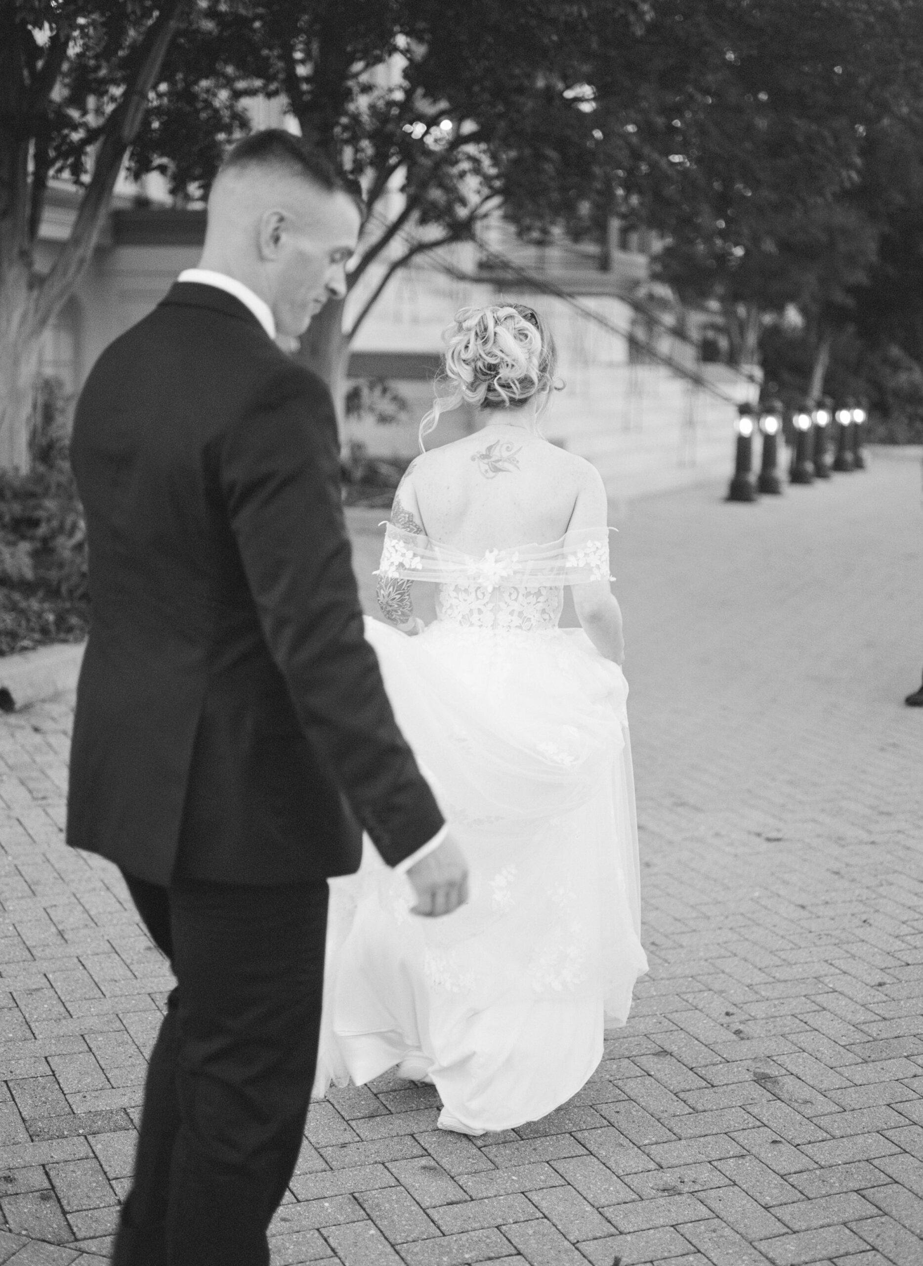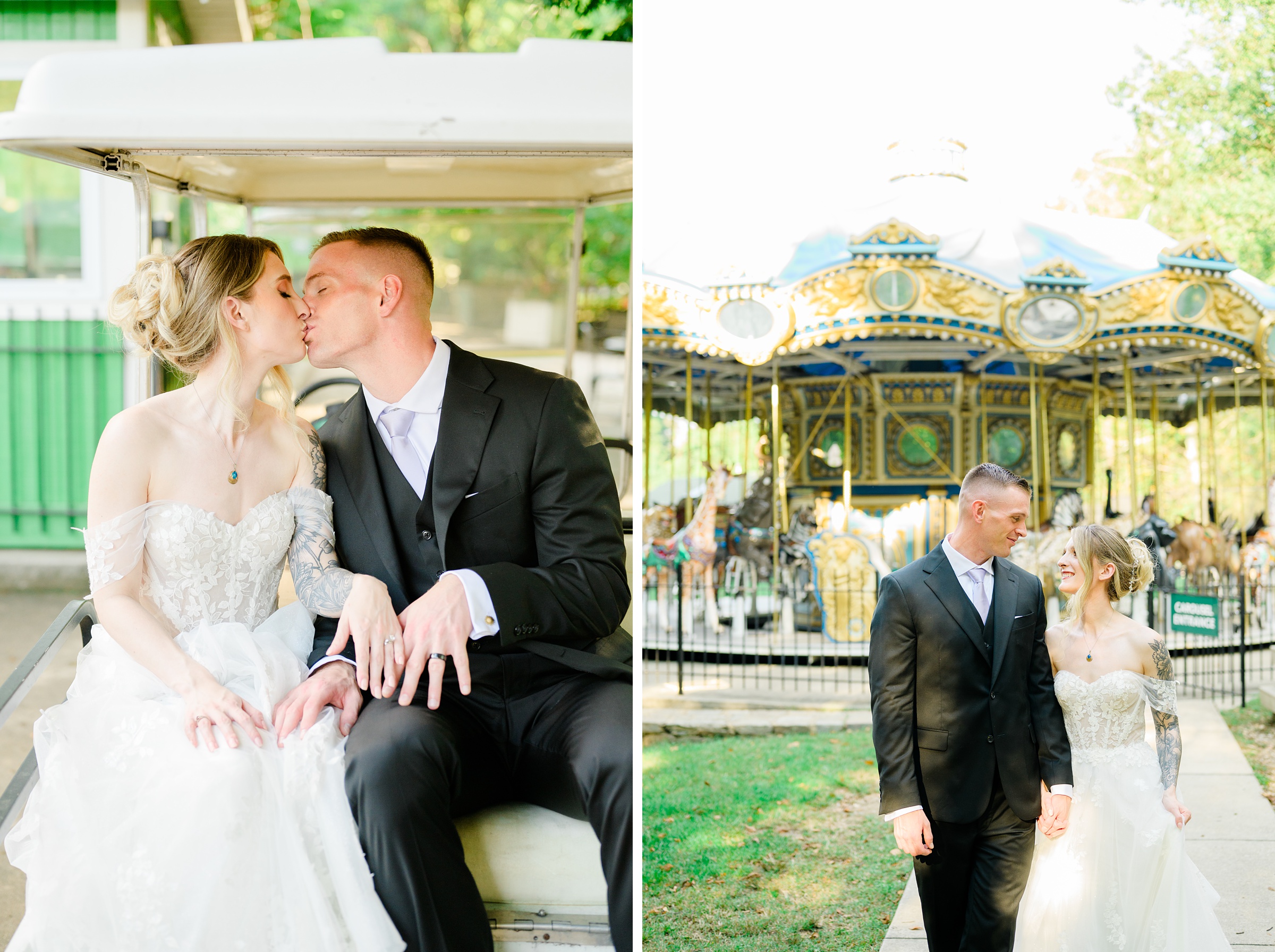Kourtney and Sean were greeted by a special guest during their cocktail hour—an African penguin! Watching them meet the penguin was so sweet, and it was such a fun bonus offered by their unique venue. Their wedding day at the Maryland Zoo just kept getting better and better! You see… in addition to hosting an absolutely beautiful day, the staff at the Maryland Zoo went above and beyond to make the day seamless too. Every single person we ran into met us with kindness and congratulations for the happy couple. Kenzie with the events staff at the zoo hustled all day long to ensure all of the logistics were in check and truly ensured that Kourtney, Sean, their guests, and their vendors were taken care of and hydrated throughout their time at the zoo! I’m actually convinced that she is super human because there were many moving parts on this wedding day, and she handled them all flawlessly! (If you’re reading this, Kenzie, thank you again!)